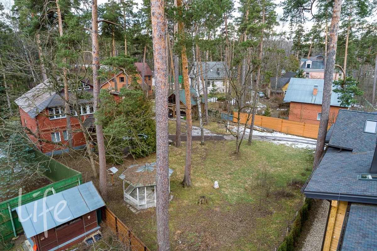 Охраняемый коттеджный поселок. Участок 18 соток, с лесными деревьями, соснами. Достаточно тихо. На территории расположено деревянное строение, облицованное кирпичом, под снос. Все центральные коммуникации на участке. Высокоразвитая инфраструктура района. В пешей доступности парк «Малевич», парк «Раздолье». Удобный въезд на платную дорогу.