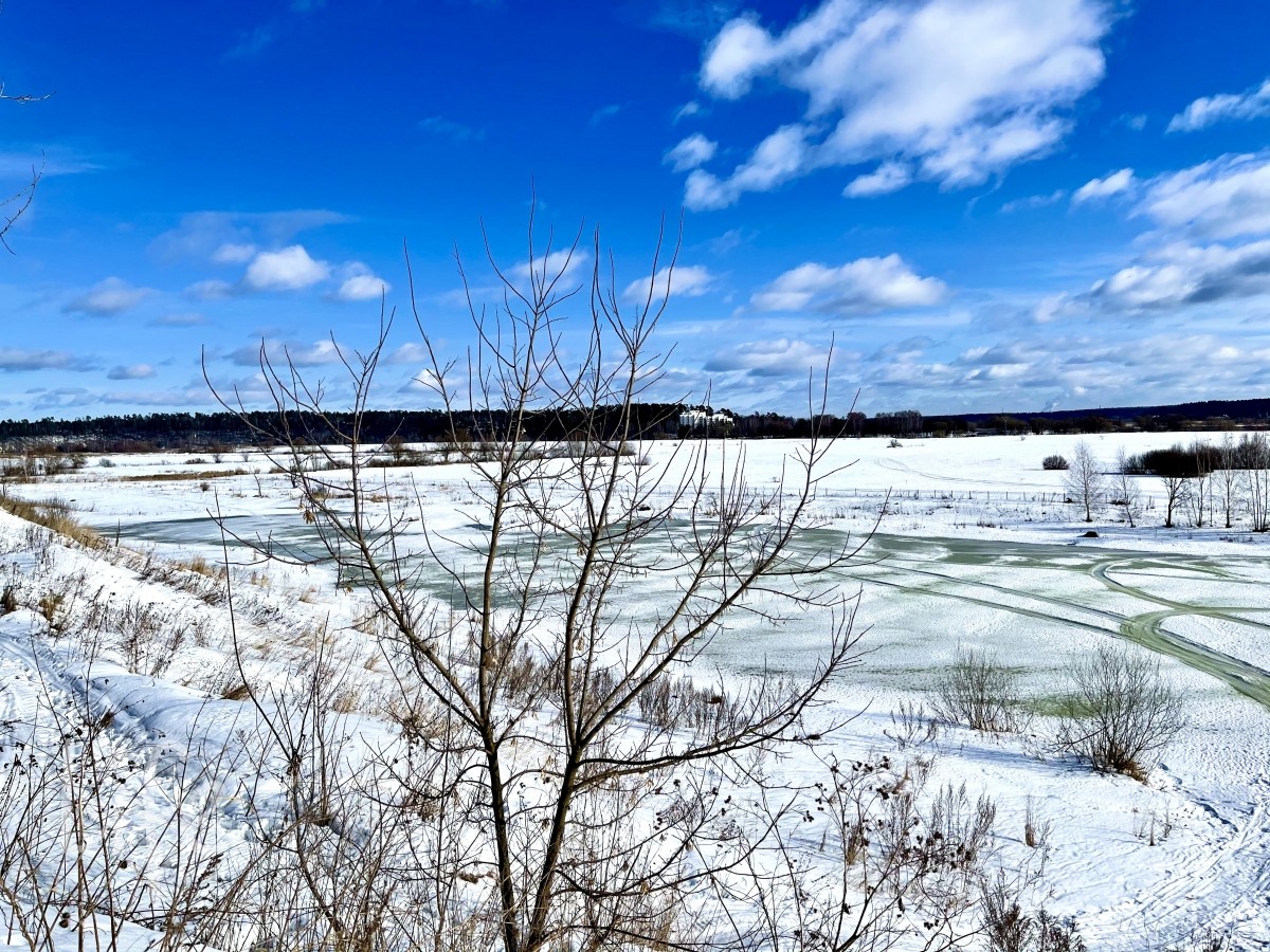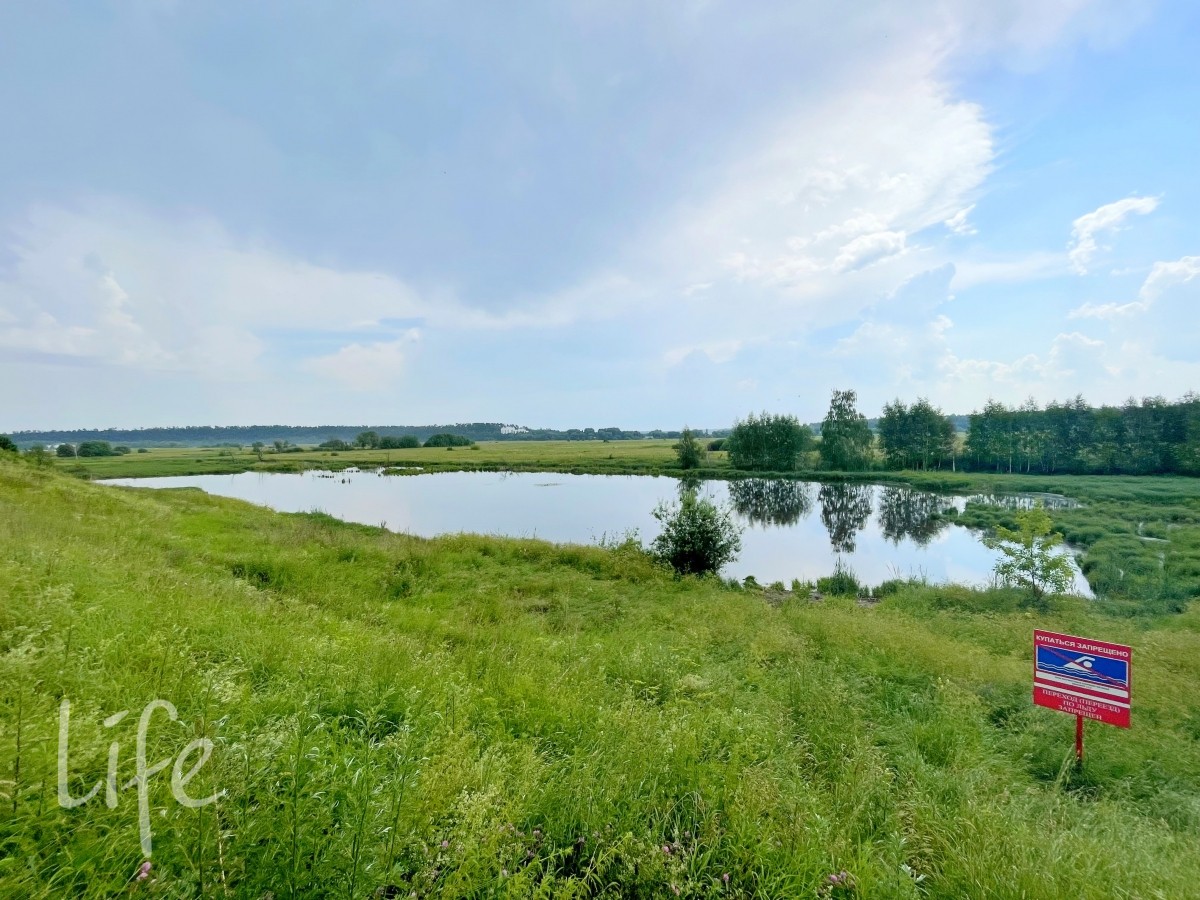 Участок прямоугольной формы с красивыми видовыми характеристиками: вид на каскадные пруды и поле с лесом.