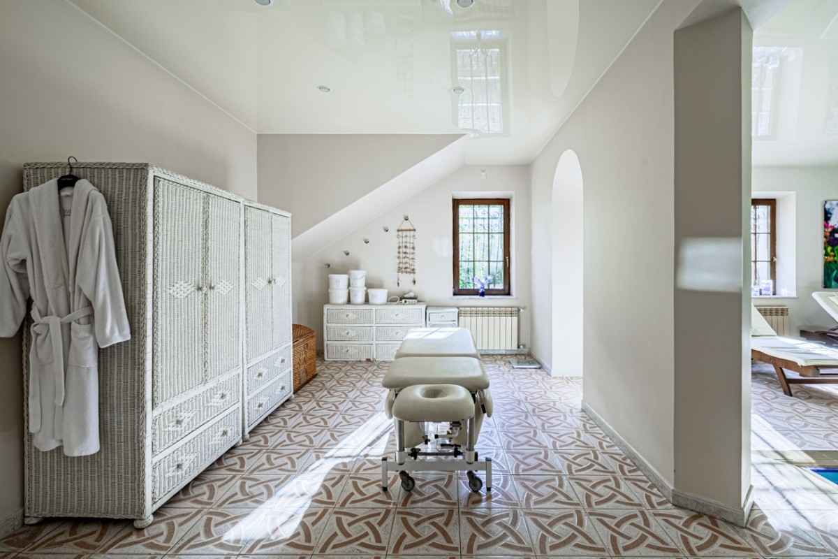 1 этаж: бассейн 13м с зоной отдыха, сауна, с/у с душем, гараж на 2 м/м.