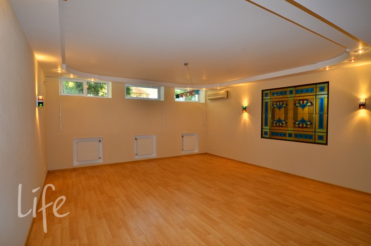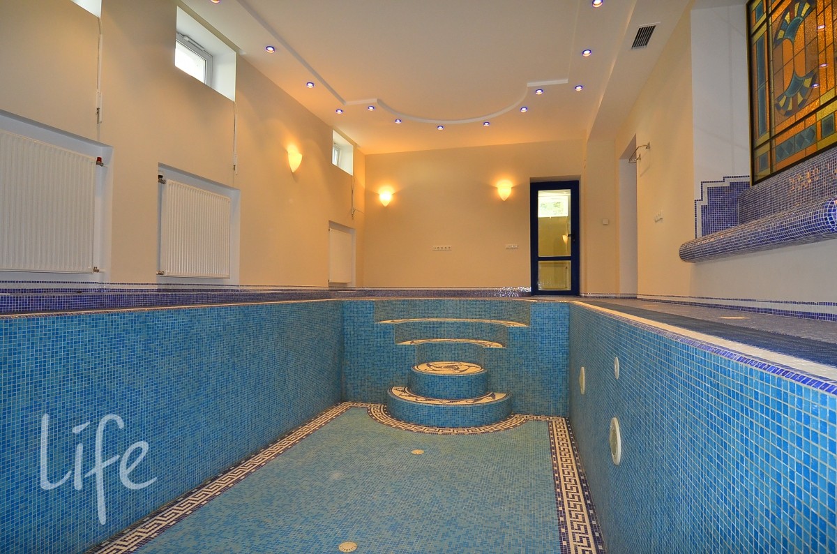 Цоколь: постирочная с кладовой, с/узел, комната отдыха с сауной и душевой, бассейн 7х3 м, бильярдная/кинозал с кондиционером, технические помещения.