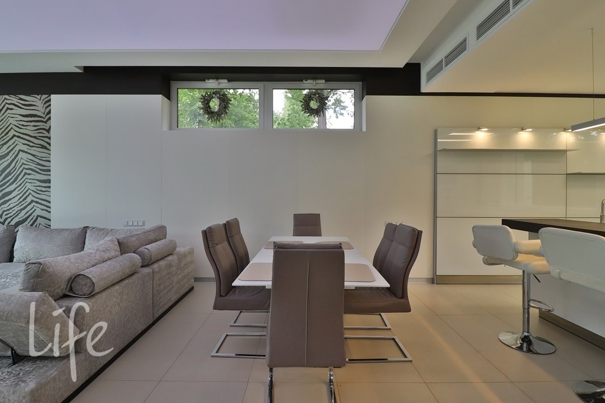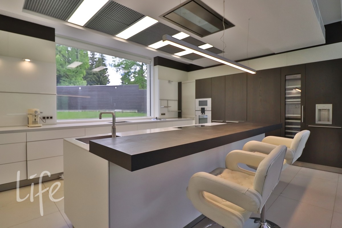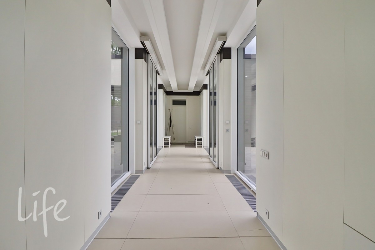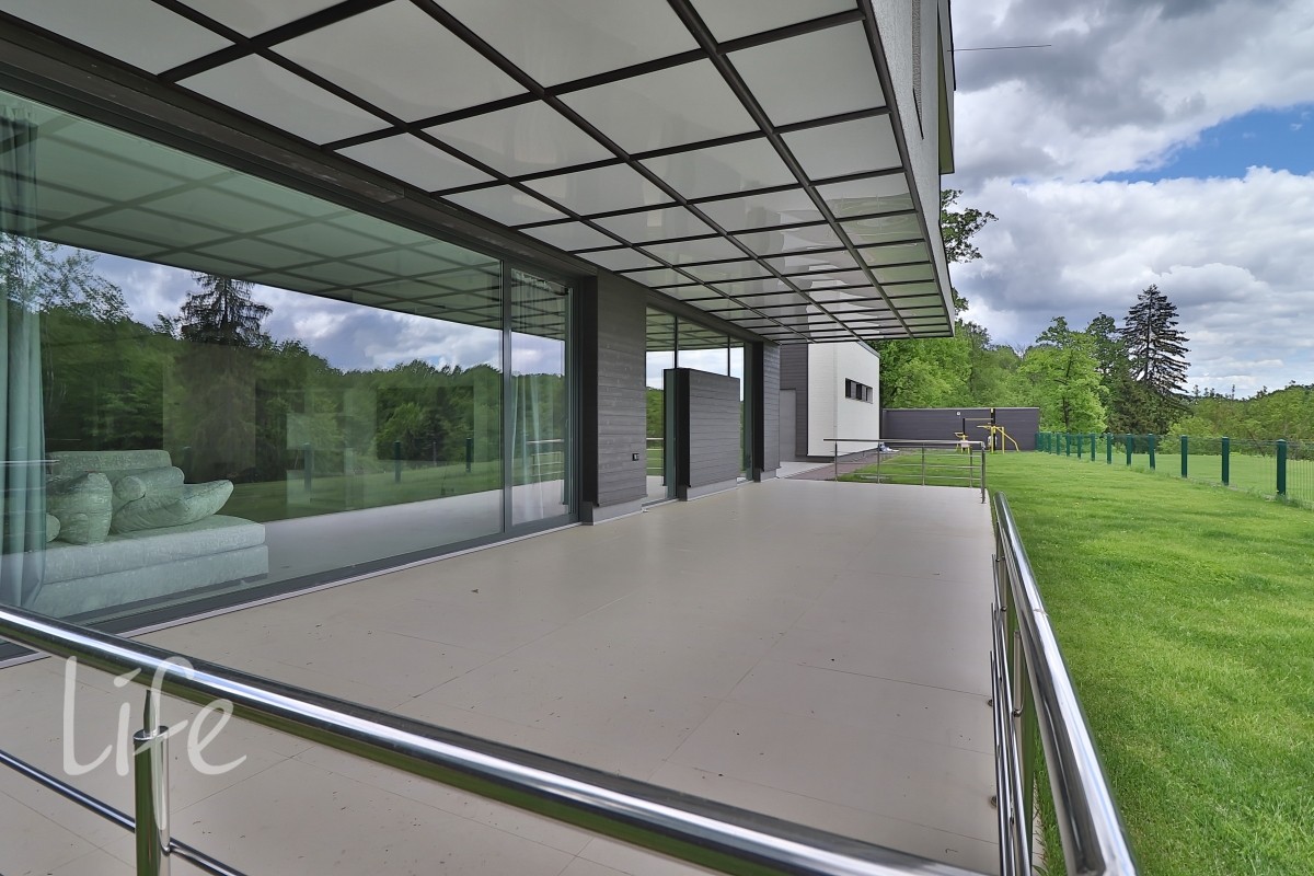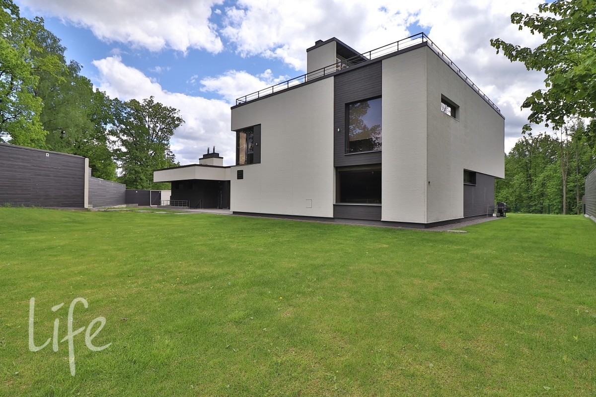 Коттеджный поселок «Новогорск-1». Дом расположен на краю холма с открывающимся великолепным видом на лесной массив. Полностью под ключ, меблирован и оборудован всей необходимой бытовой техникой. Современная архитектура, кубические формы, панорамное остекление. Комфортная планировка включает в себя зону гостиной-кухни-столовой, кабинета, мастер-спальни с панорамным видом на природу, двух спален, зону досуга в цоколе. Поселок охраняемый, детские площадки, лесные зоны для прогулок.