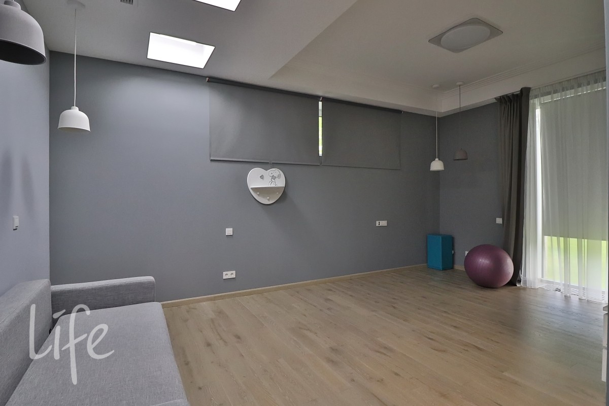Цоколь: холл, большой зал (кинотеатр, караоке), комната свободного назначения, гардеробная, постирочная-гладильная, две комнаты возможно, для персонала, котельная, кладовые.