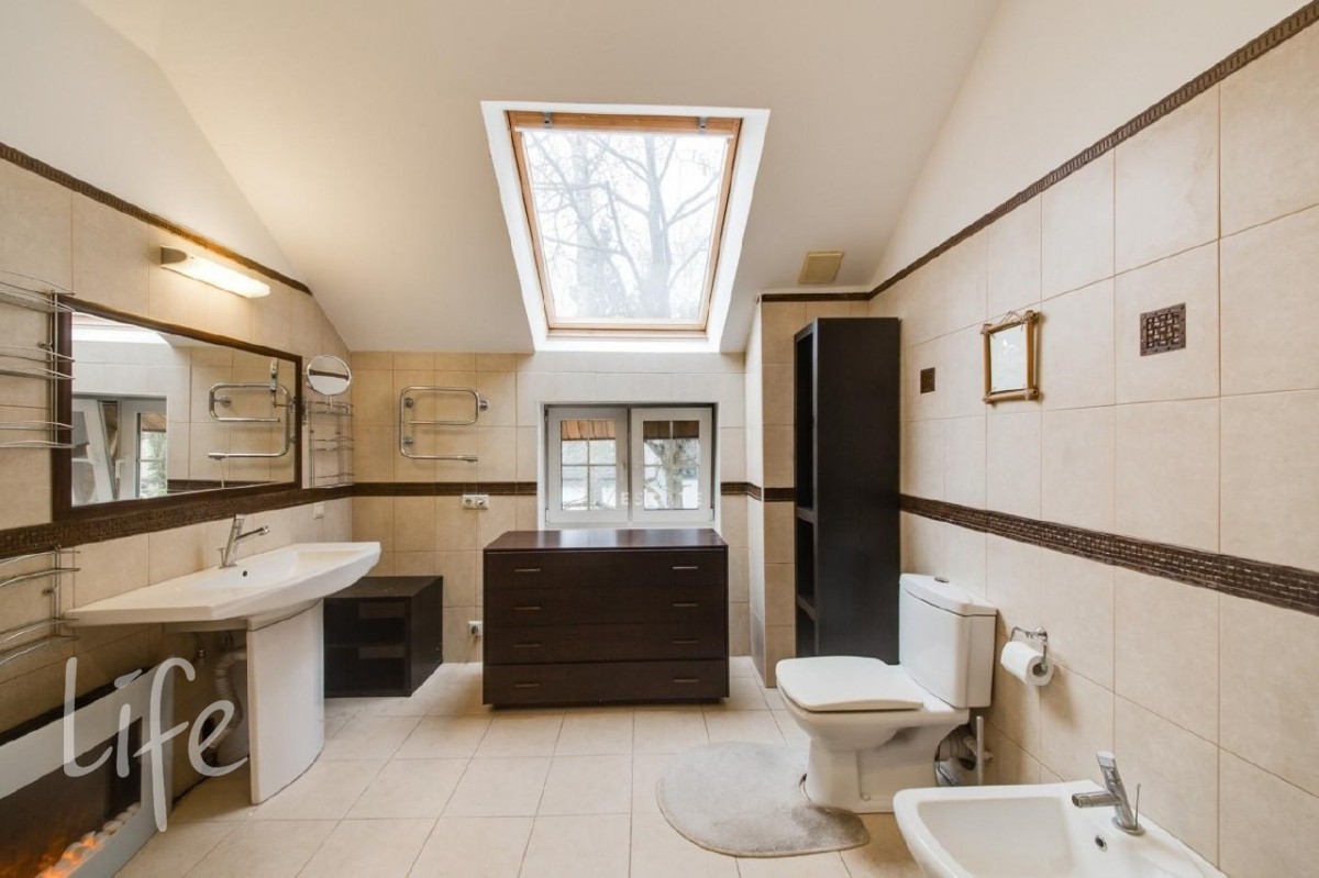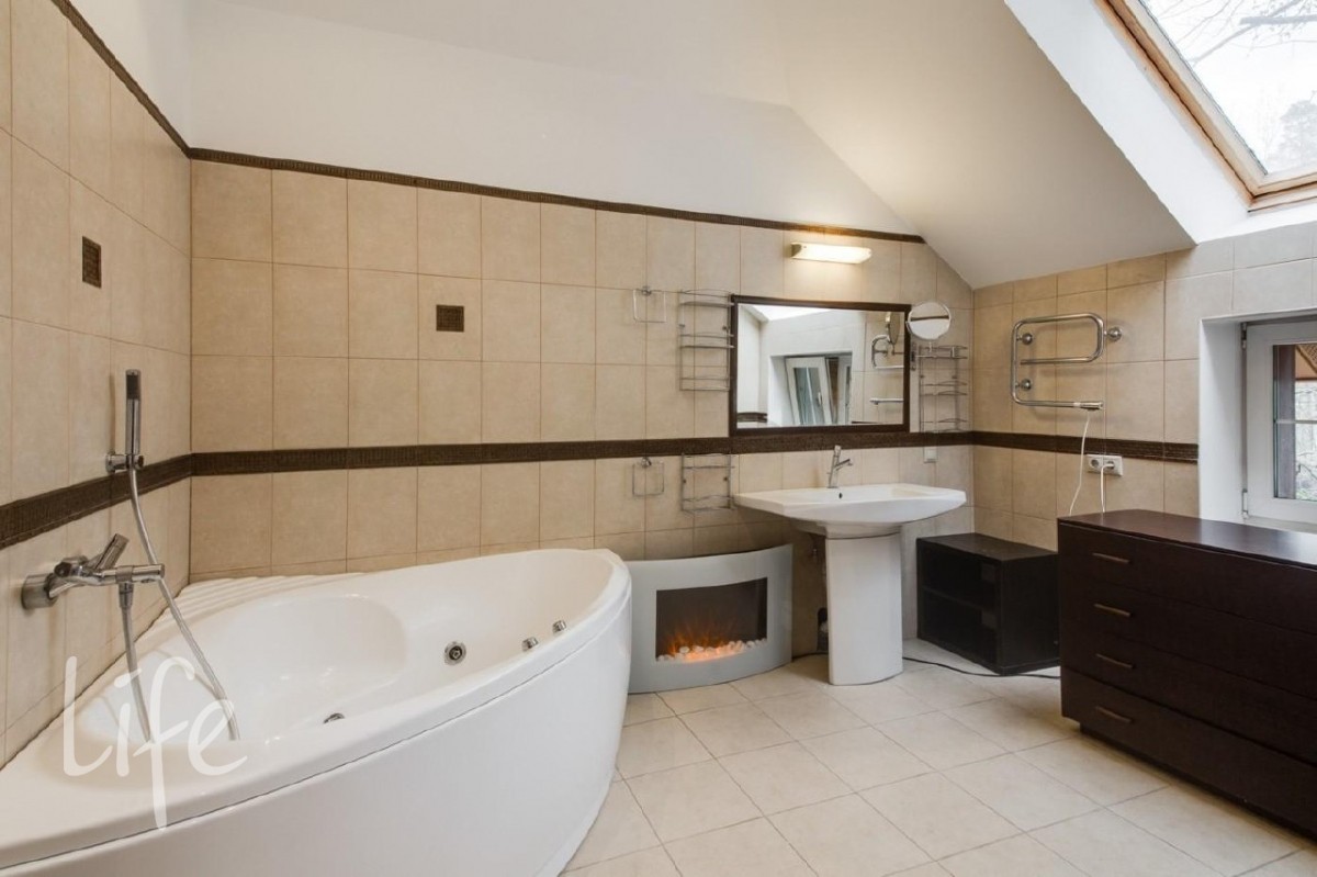 2 этаж: большая спальня, малая спальня, спальня с панорамными окнами (используется как кабинет), большой санузел с джакузи.