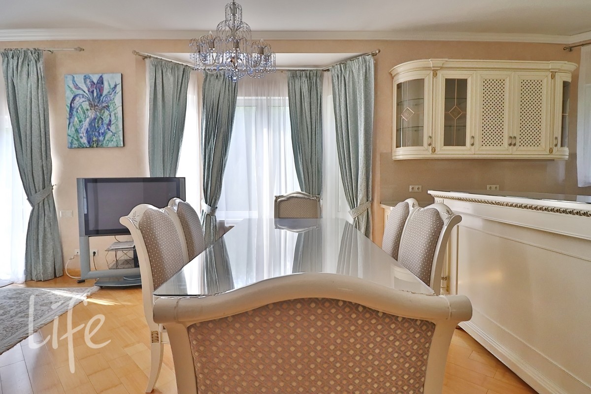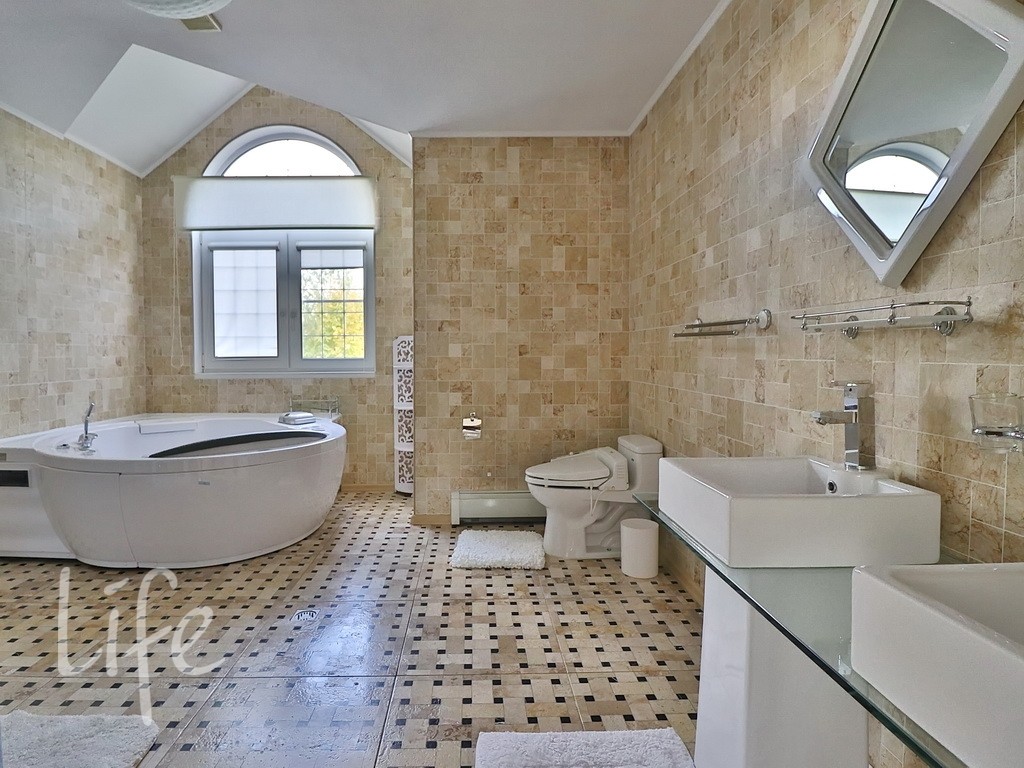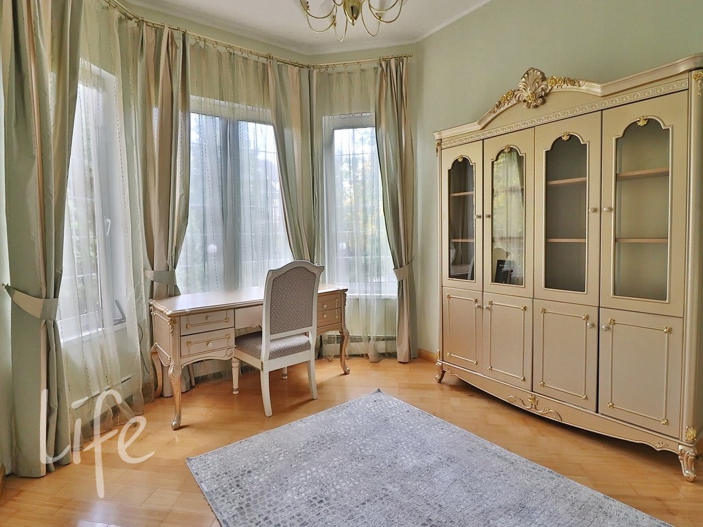 Охраняемый поселок. Прекрасный дом, готовый принять арендаторов, чистый, ухоженный, меблирован. Комфортная планировка, включающая в себя гостиную, кухню-столовую с выходом на открытую террасу, каминный зал, кабинет, четыре спальни. Участок ухоженный, на территории расположен дом с бильярдом, спорт зоной, сауной, беседкой барбекю. С участка открывается красивый вид на церковь. Высоко развитая инфраструктура района, школы, детсады, фудкорты и прочее.