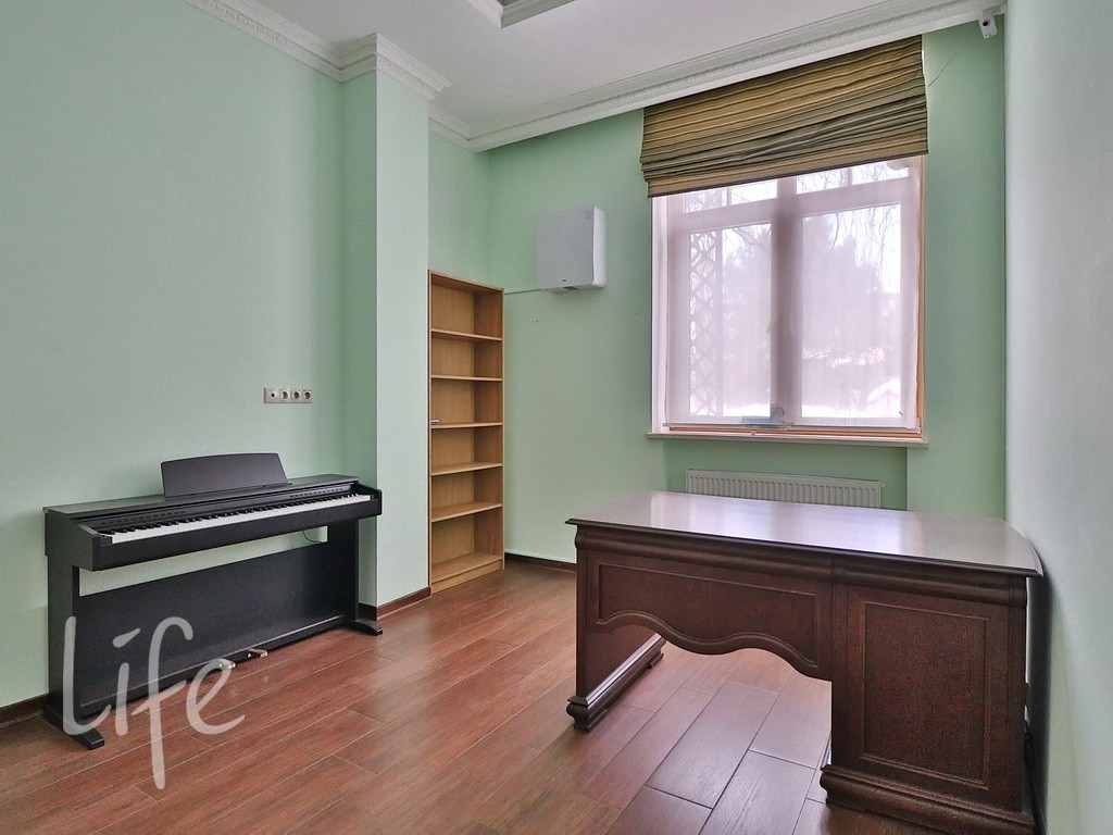 Планировка дома продумана до мелочей: пять спален, просторная гостиная, кабинет. В отдельном здании расположена баня. Все коммуникации центральные. В доме установлены тёплые полы и кондиционеры. А ещё здесь очень приятная хозяйка. В посёлке действует строгий пропускной режим. На его территории находятся: