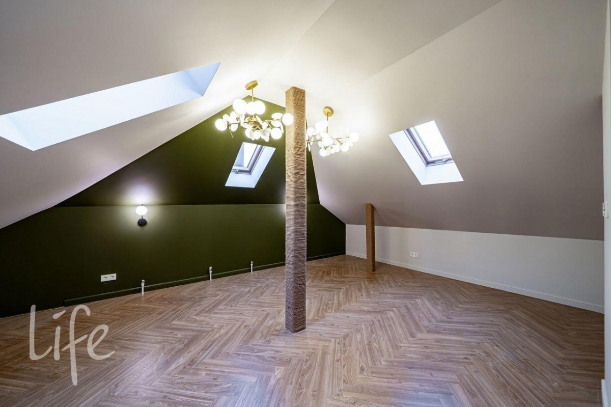 Мансарда: кабинет с зоной отдыха, две спальни, с/у, гардеробная.