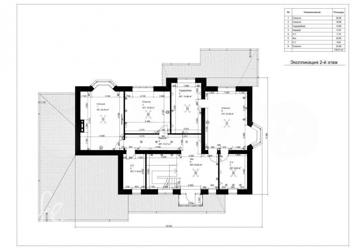 2 этаж: холл, мастер-спальня с с/у и гардеробной, две спальни, с/у, балкон.