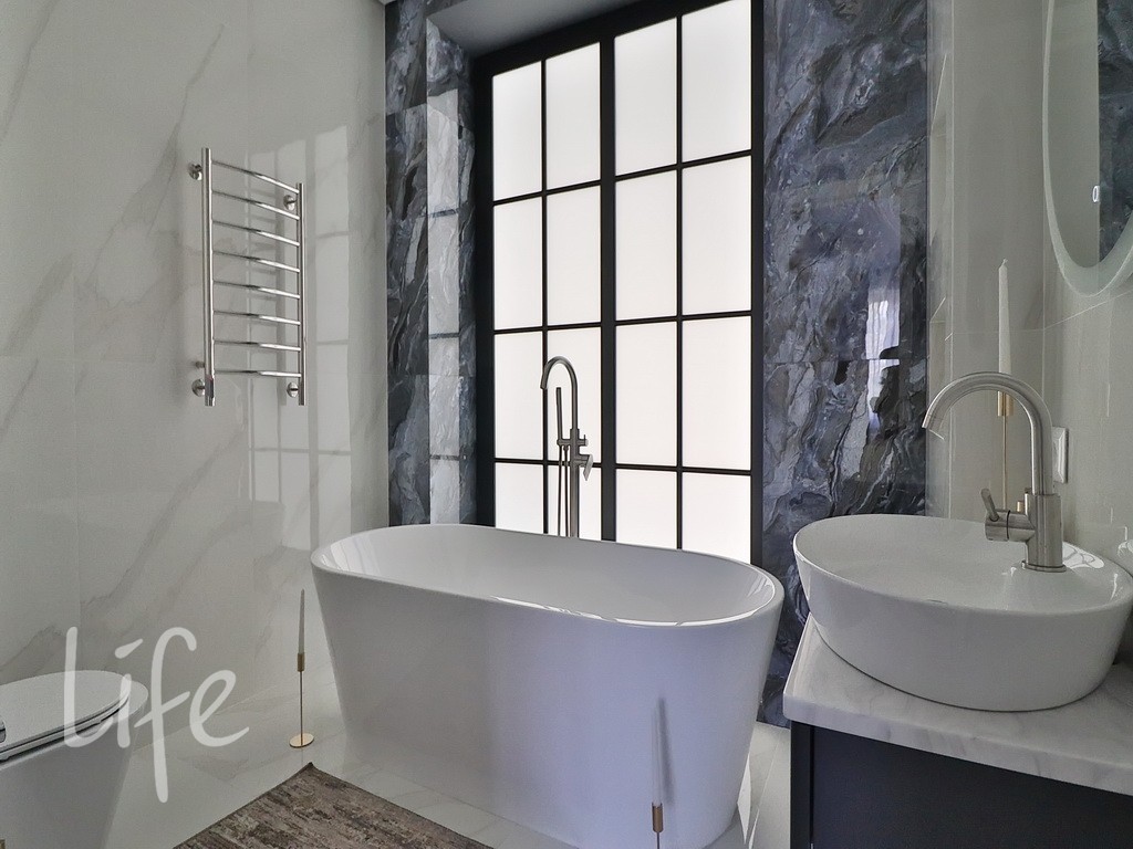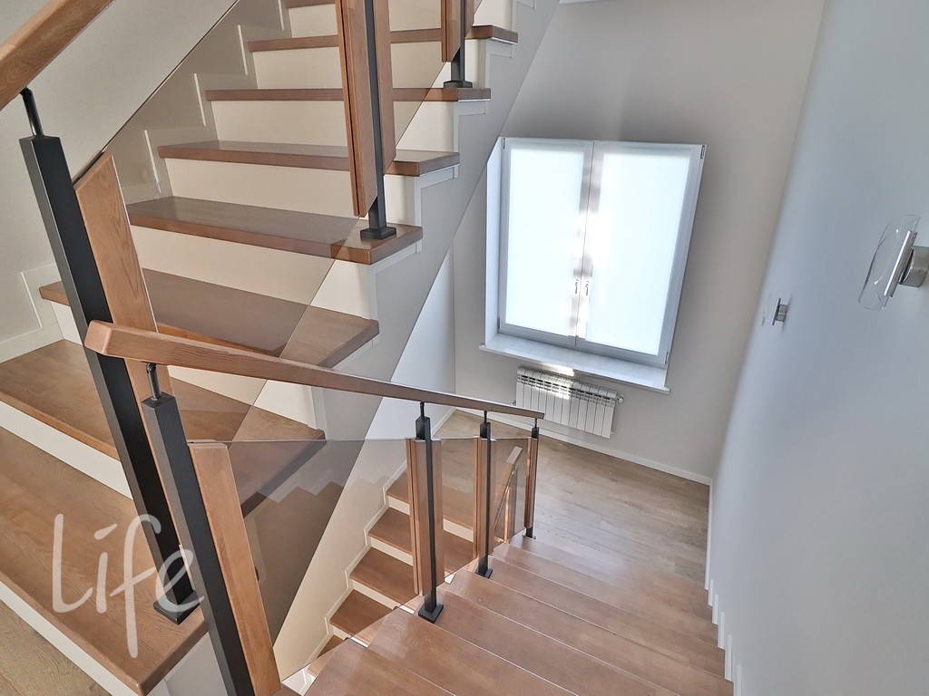 Планировка более чем комфортная: гостиная со вторым светом, три-четыре спальни (одна, что удобно, на первом этаже), кухня-столовая, зона СПА с бассейном и сауной. На участке расположен гостевой дом с двумя спальнями, под внутреннюю отделку.