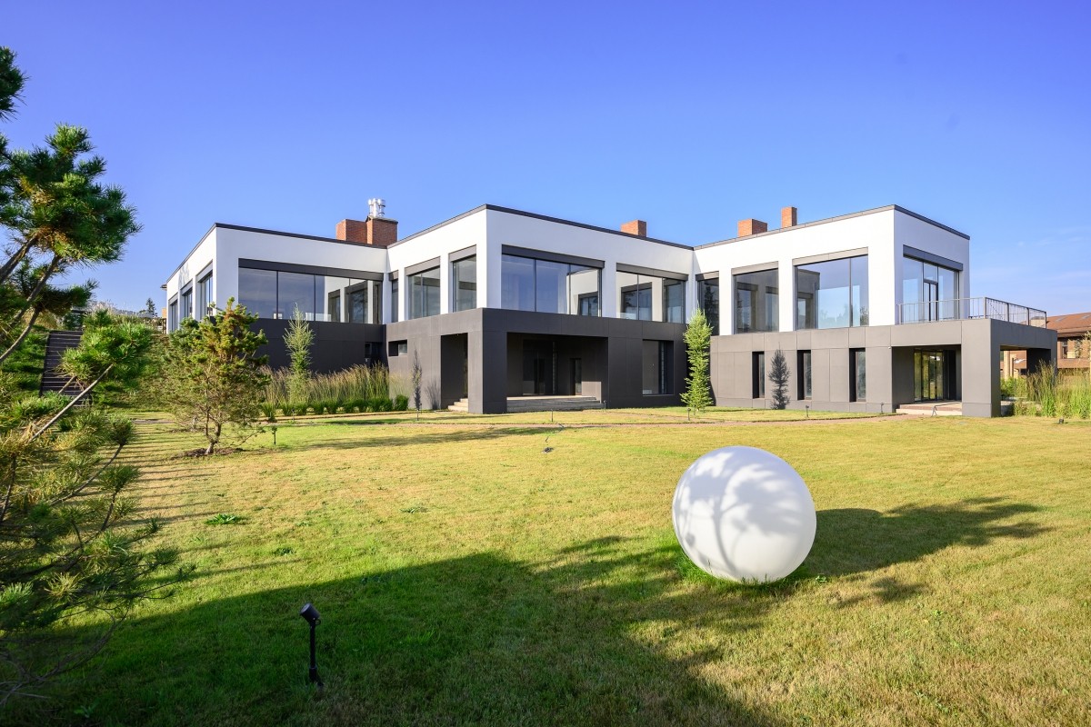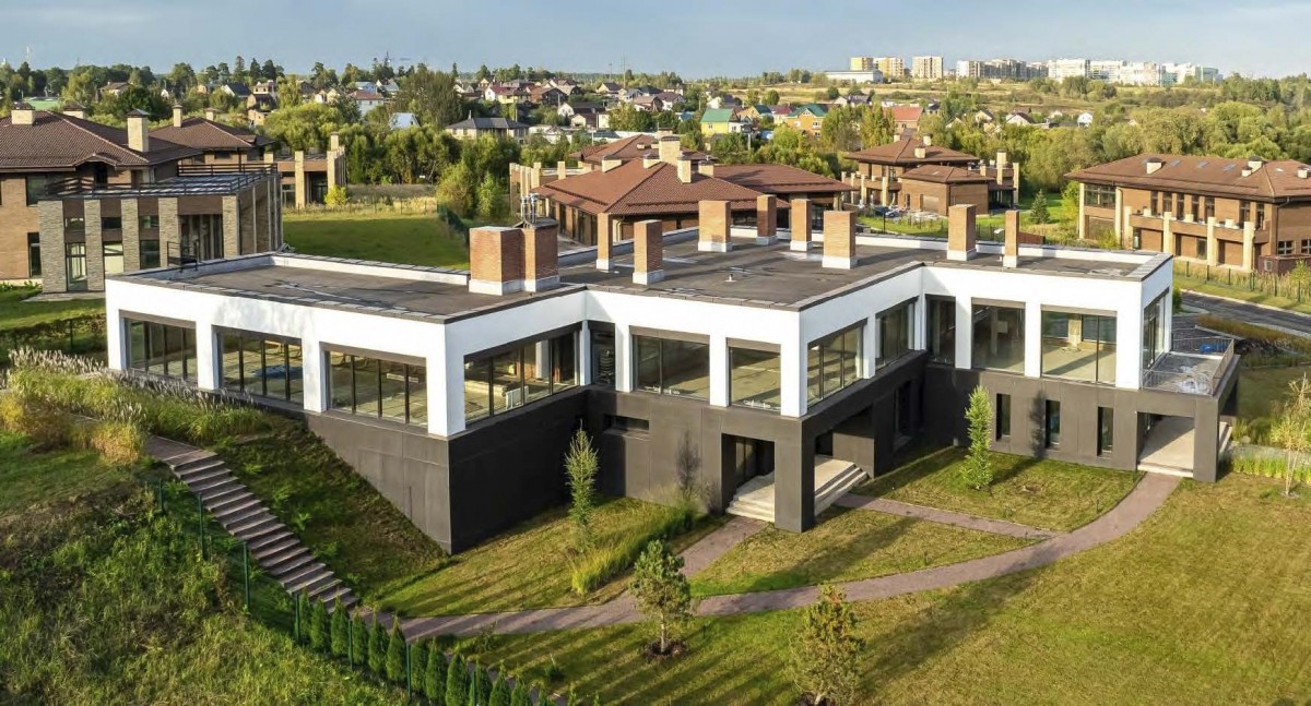 Современный двухэтажный дом 940 кв.м “под отделку” со свободной планировкой на солнечном участке 28 соток в клубном элитном поселке «Усадьба Бергов» в 23 км от МКАД на Киевском шоссе. Скоростной доступ по платной М-1 трассе “Северный обход Одинцова” и проспекту Багратиона от Москва-Сити.