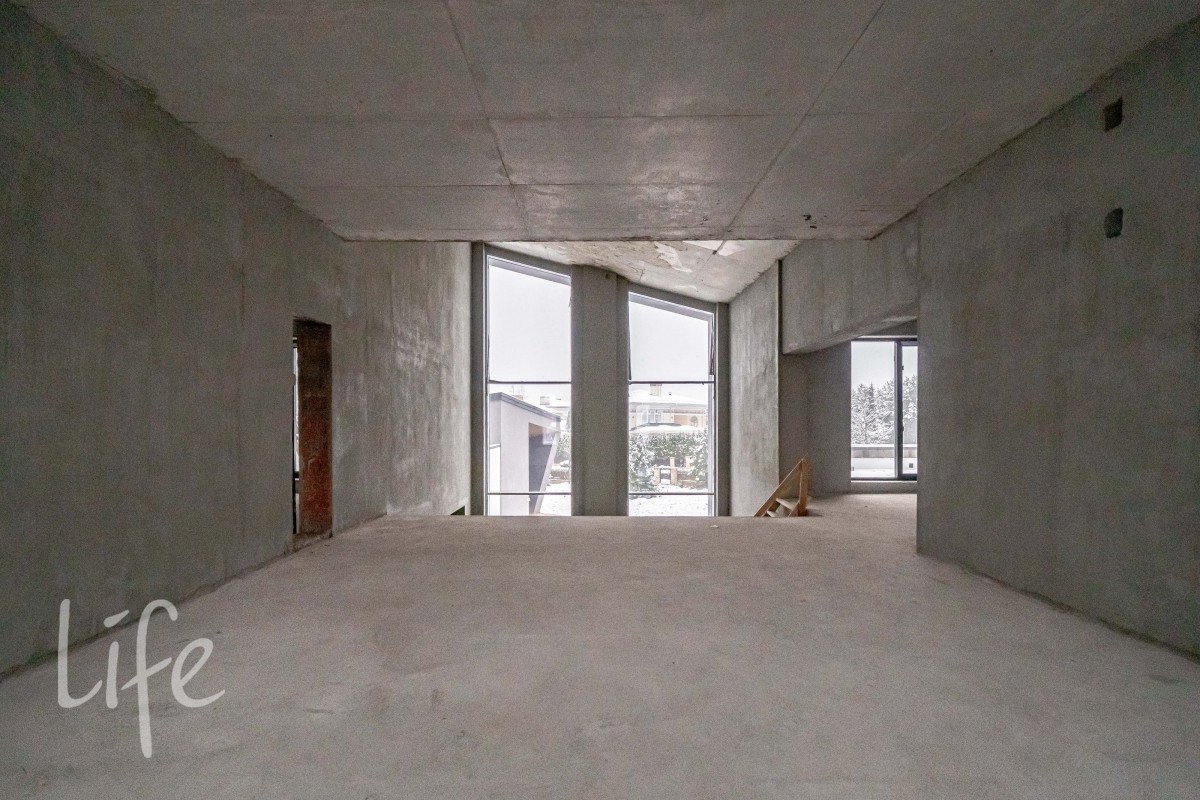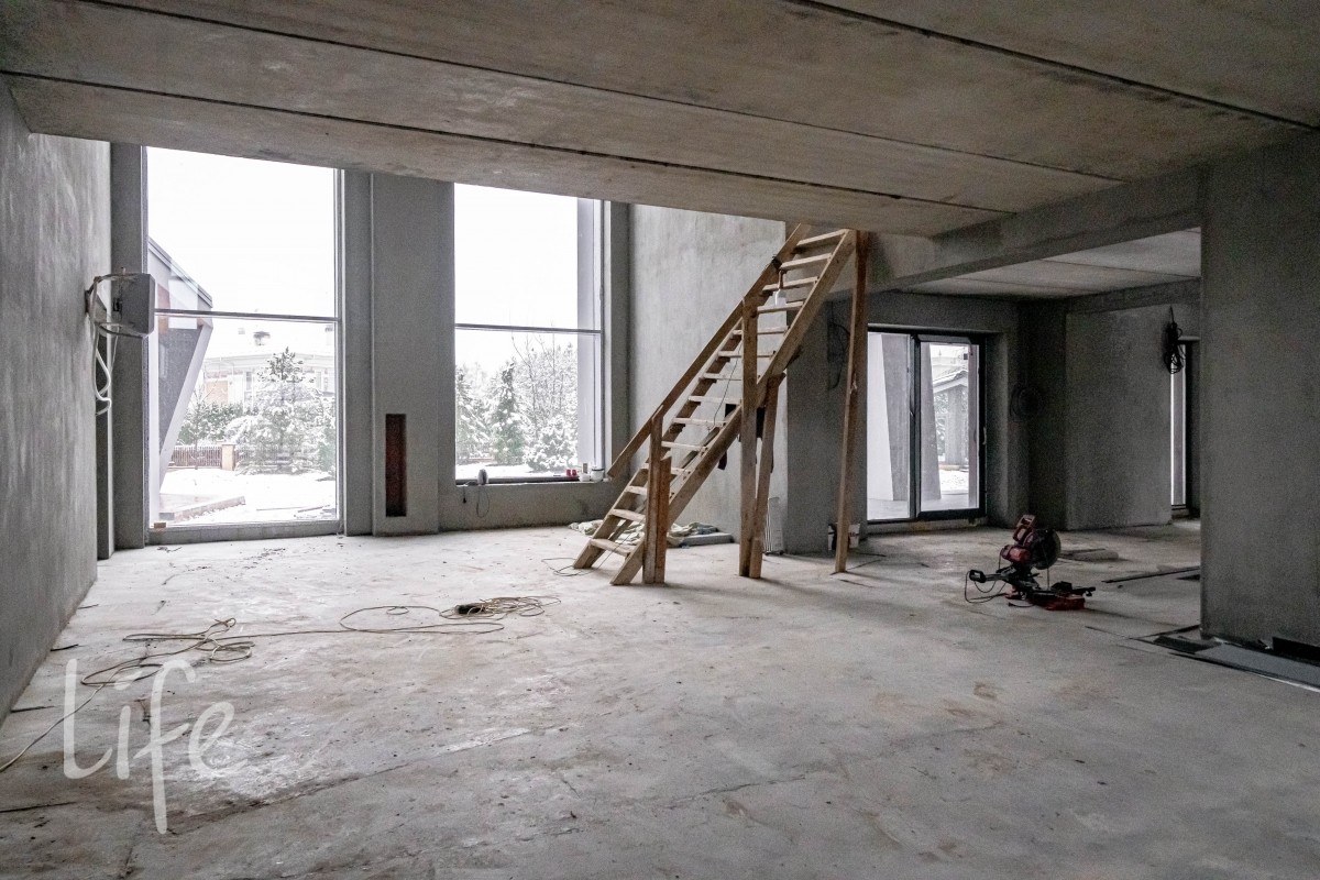 Дом представлен под отделку, что позволяет создать собственный эстетический сценарий и выстроить индивидуальную логику помещений. Просторные помещения, продуманная геометрия и большие световые проёмы дают широкие возможности для будущего интерьера.