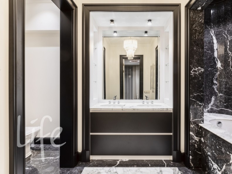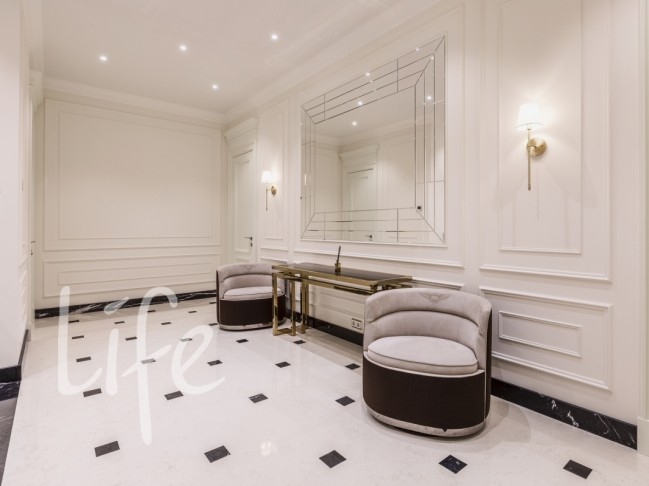В отделке дома использованы только высококачественные материалы: натуральный камень, ценные породы дерева и мрамор. Вся бытовая техника и мебель — от лучших европейских брендов, что гарантирует вам комфорт. Интерьер выполнен в современном классическом стиле, в светлых тонах, с тщательно подобранной мебелью и аксессуарами.