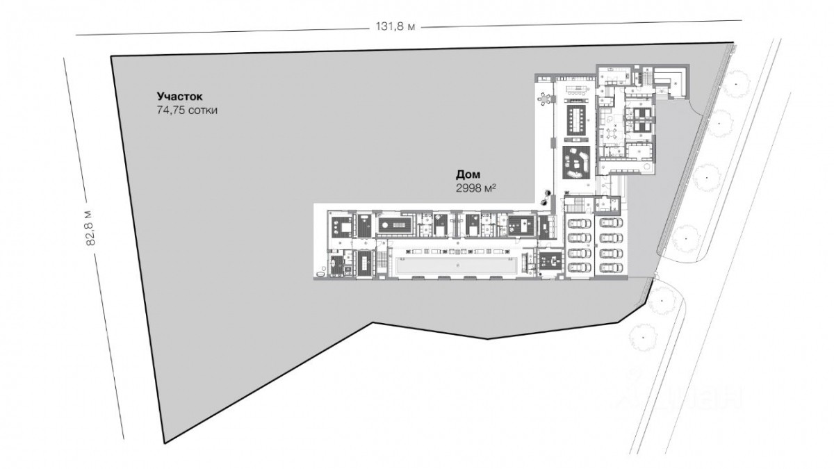 Одноэтажный дом 3000 м2, 4 спальни, бассейн 25 метров, современная архитектура. Участок 74,6 сотки.