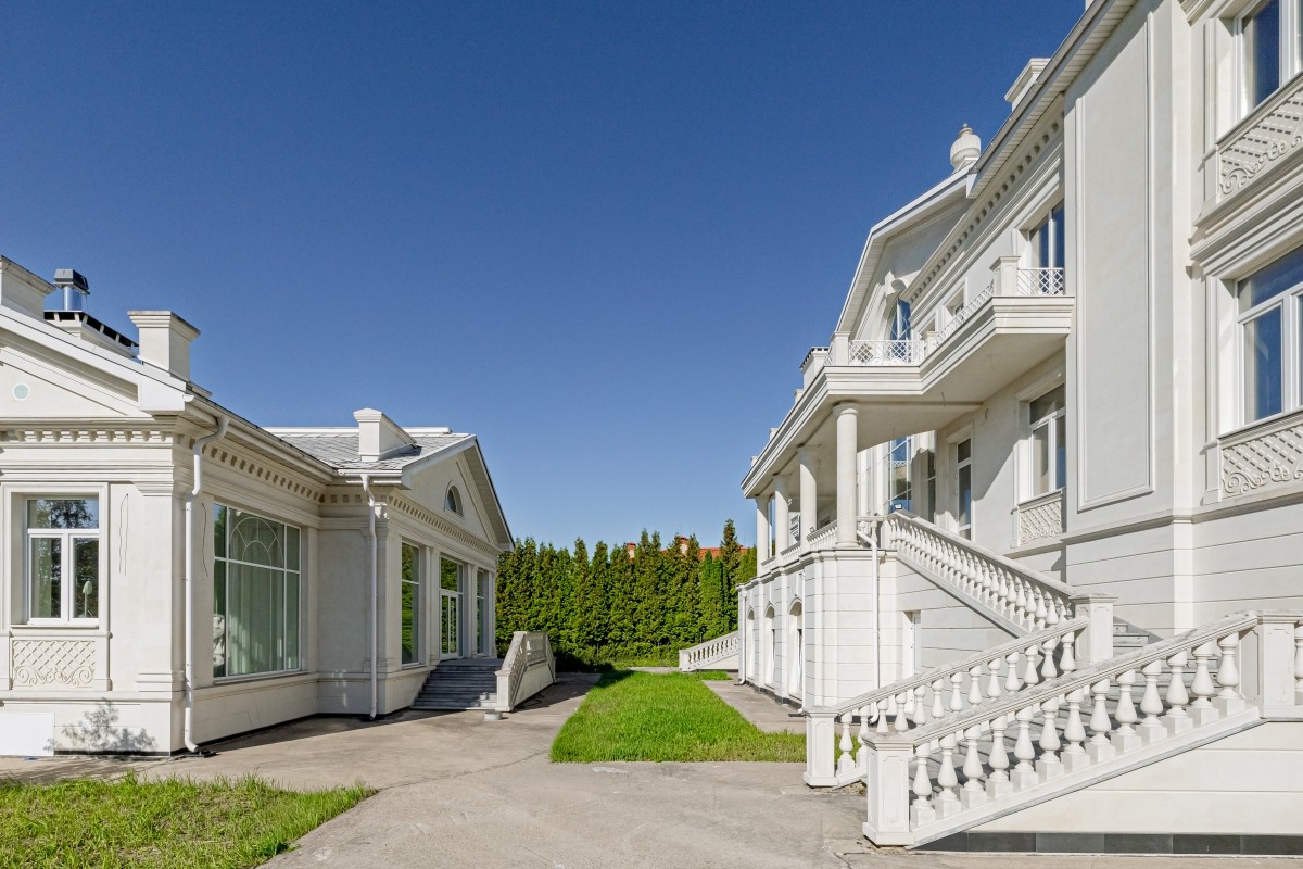 Элитный коттеджный поселок «Миллениум парк». Роскошная усадьба под внутреннюю отделку в состоянии «White box», есть готовый дизайн-проект с восточными «нотками». Оштукатурены стены, разведены электричество, системы водоснабжения и канализации, система отопления (дом отапливается), система вентиляции и кондиционирования. В этом доме есть помещение под большой домашний кинотеатр, зимний сад, бильярдная и SPA-центр с хамамом и баней. Установлена система «Умный дом», которая управляется через интернет. Также есть шахта для лифта. Дом строился для личного проживания.