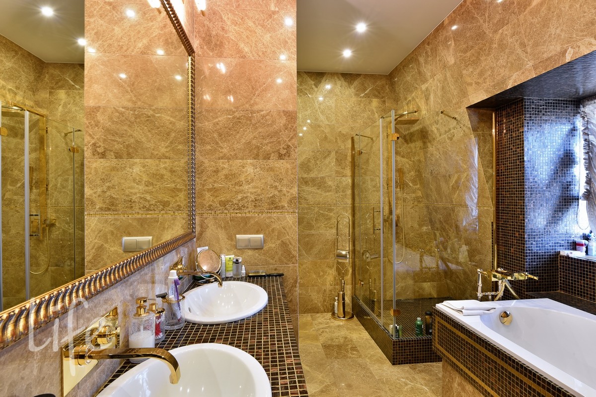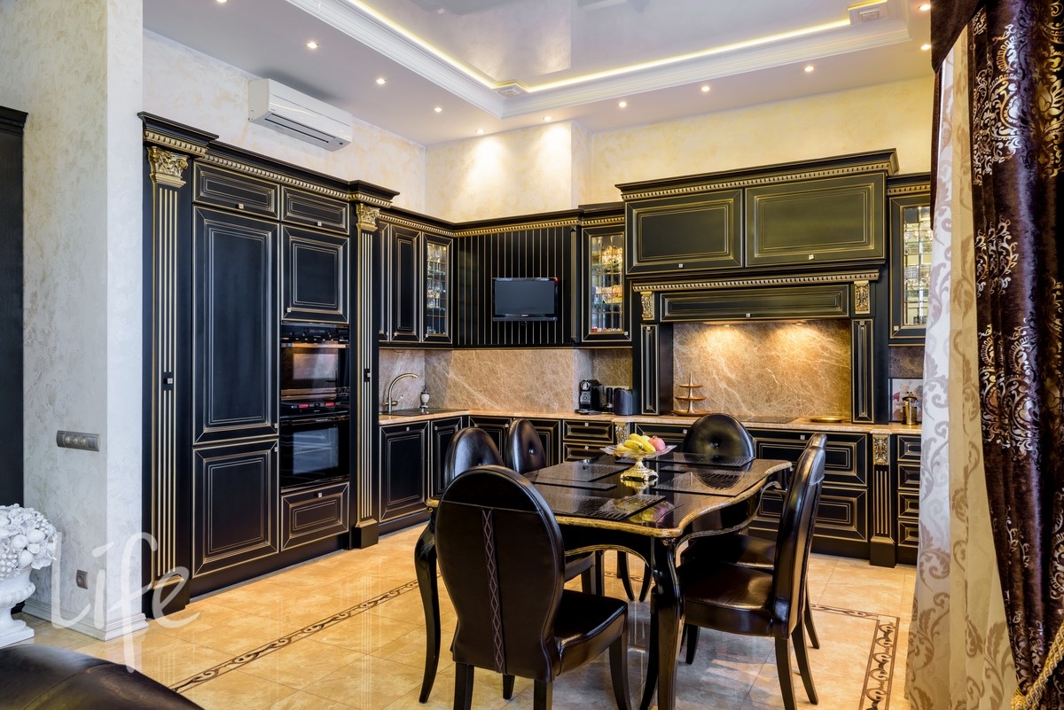 Особенности: кухонный гарнитур Kuchenberg Bristel, юытовая техника Kuppersbusch, сантехника от мировых брендов Villeroy and Boch, Migliore, Porcelanosaс.