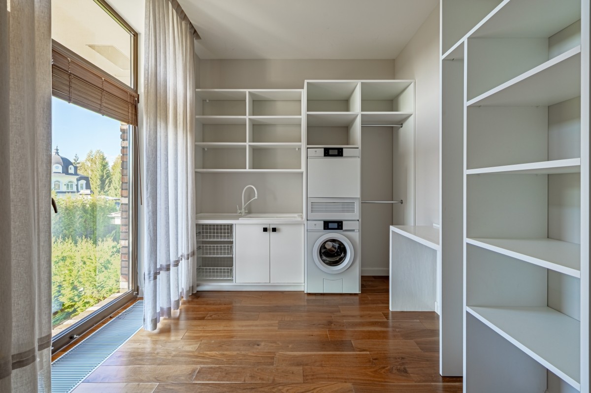 2 этаж: мастер-спальня с ванной комнатой, гардеробной и балконом, спальня с ванной комнатой, гардеробной и балконом, спальня с ванной комнатой и гардеробной, постирочная.
