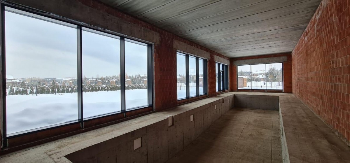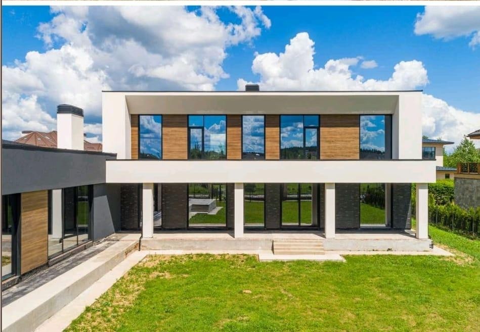 Элитный коттеджный поселок «Миллениум парк». Новый, современный дом в стиле хай-тек, с панорамным остеклением и плоской кровлей. Под внутреннюю отделку.
