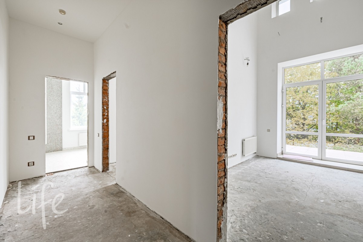 Состояние "под финишную отделку": полы подготовлены под паркет/массив, стены под обои/покраску, с/у под укладку плитки. Разведена вся слаботочка, электрика. Дом отапливается по постоянной схеме.