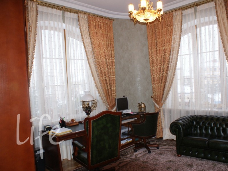 Интерьер выполнен под стать фасаду в классическом стиле, требует обновления. В доме несколько дровяных каминов.