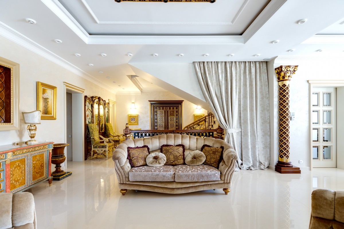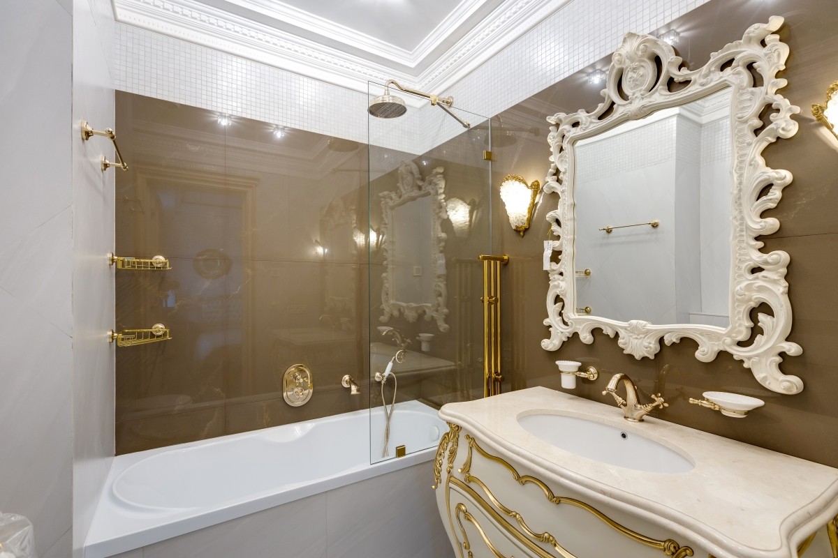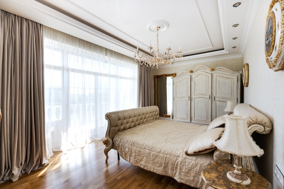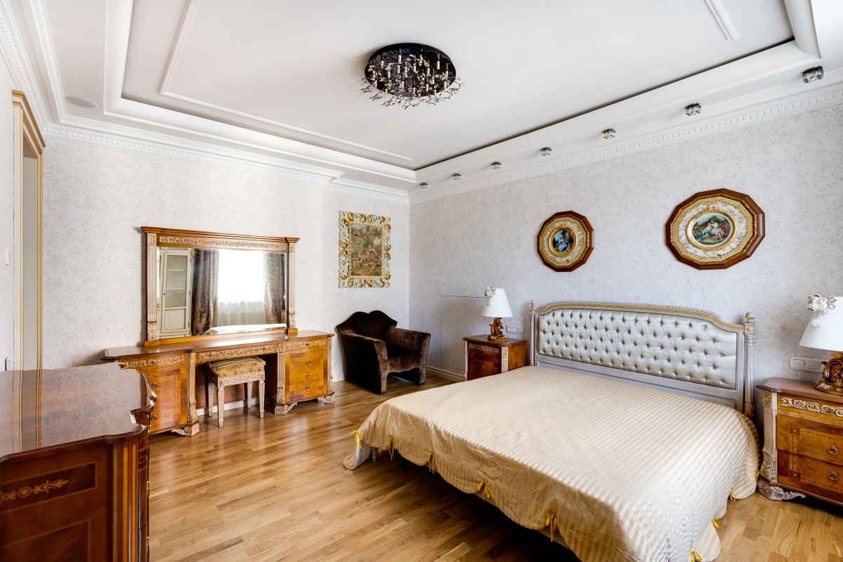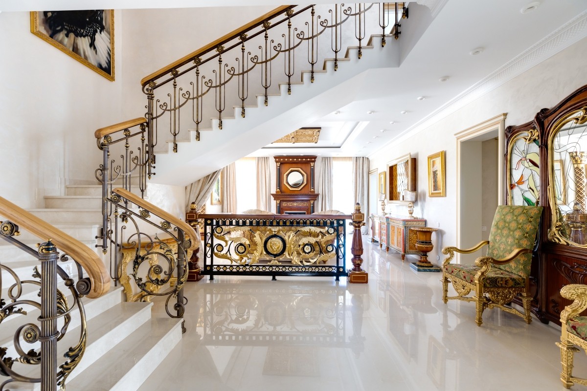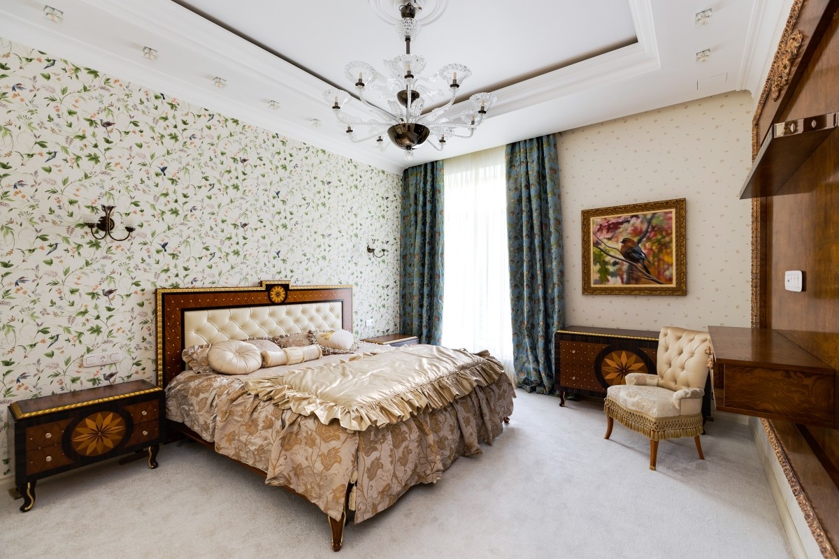 Интерьер выполнен в стиле классицизма, отделка из роскошных, дорогих материалов. Пастельные тона, золотые акценты создают атмосферу уюта и благородства. Натуральные материалы подчёркивают роскошь и долговечность. Мебель от итальянских дизайнеров подобрана со вкусом, а декор добавляет изысканности, украшая пространство.