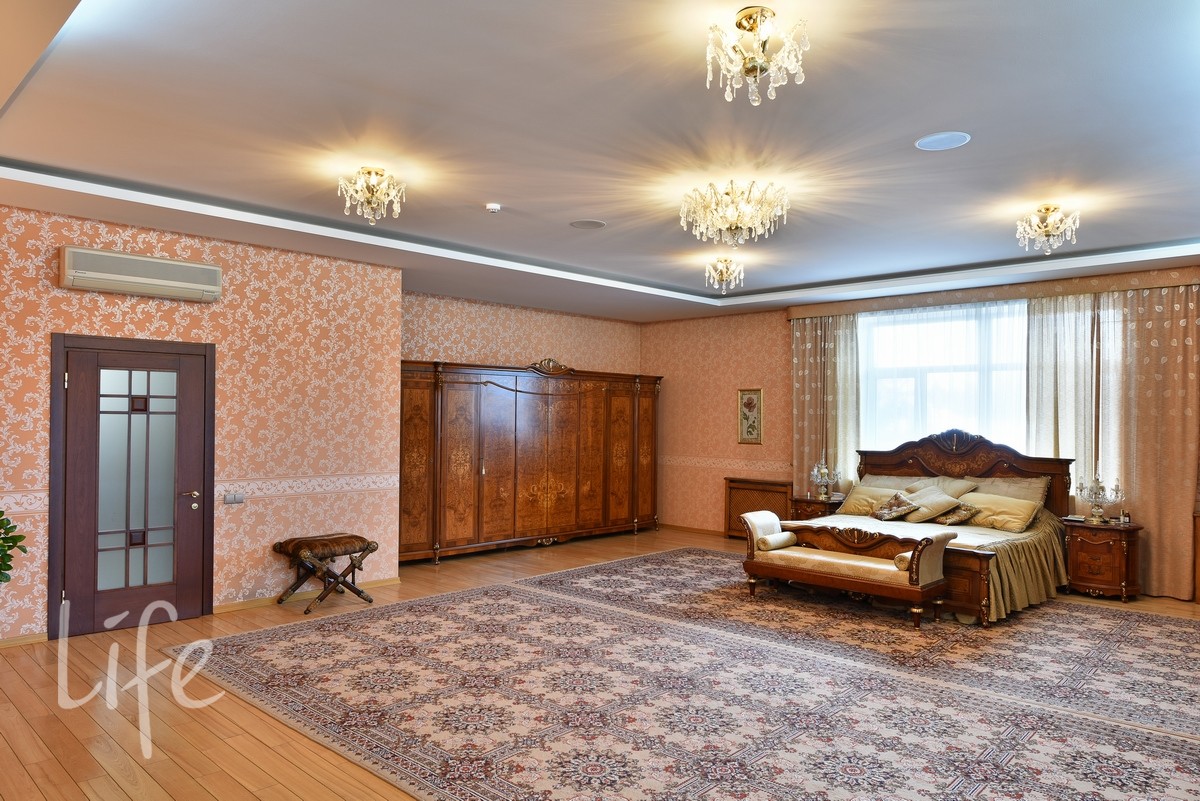 Интерьер выполнен в классическом стиле, со вкусом подобраны мебель и предметы быта. Комфортная планировка с пятью спальнями, гостиной, зоной СПА подойдет для большой семьи.