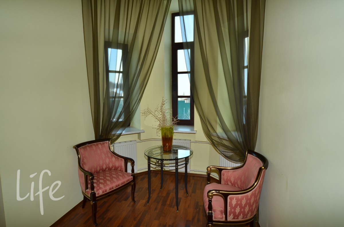 Интерьер выполнен в классическом стиле, со вкусом подобрана мебель и предметы быта.