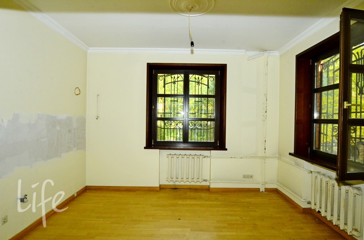 Дом под реконструкцию или снос, или как дом гостевой/обслуживающего персонала. Конструктив: монолитный фундамент, ж/б перекрытия, стены — кирпич, крыша — оцинкованное железо.