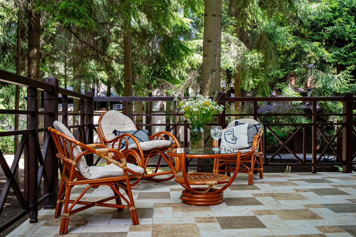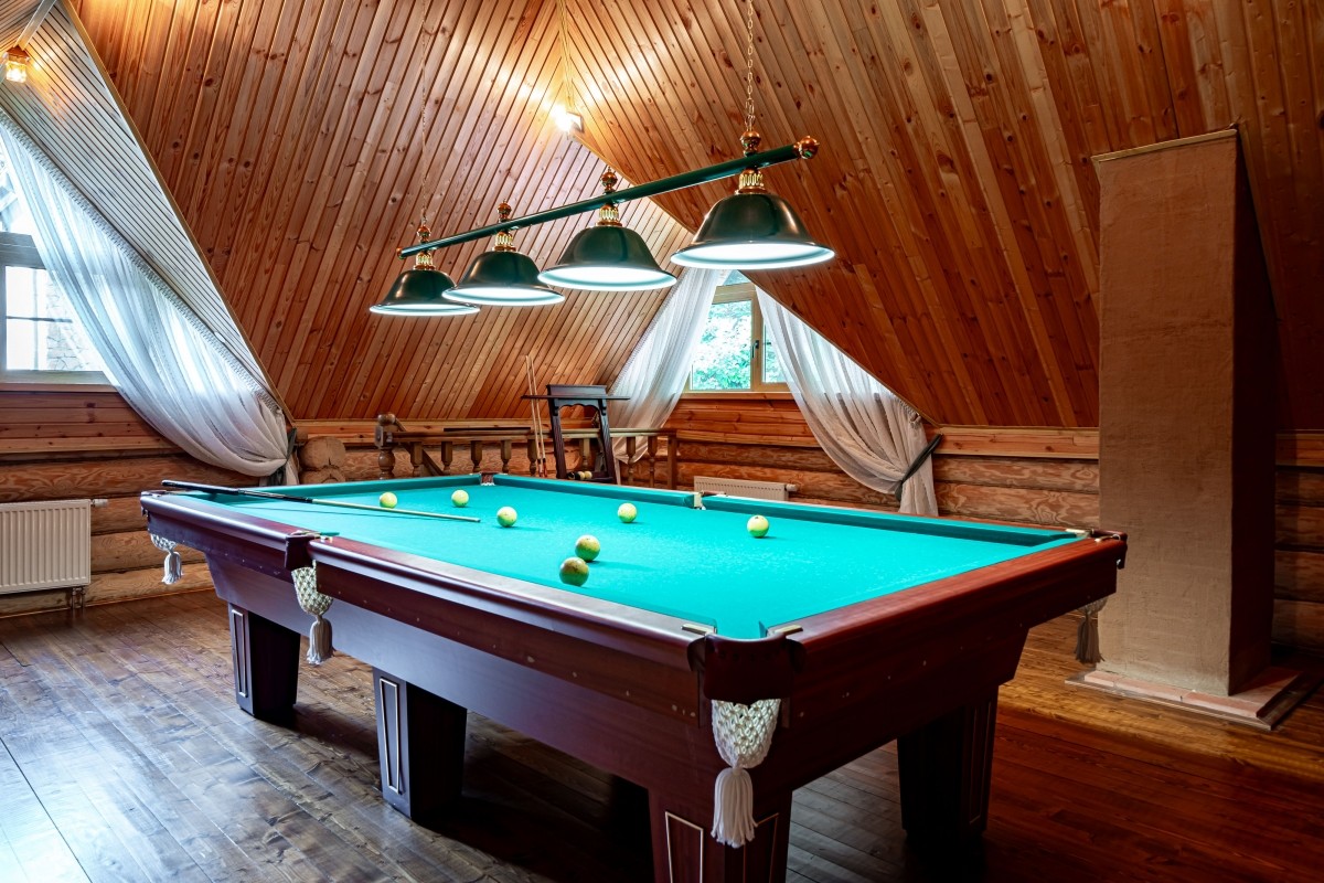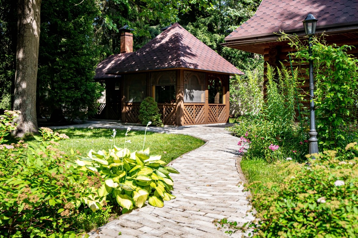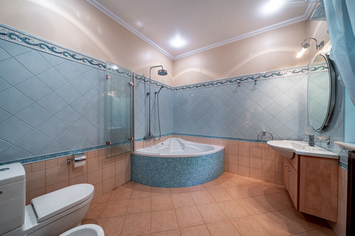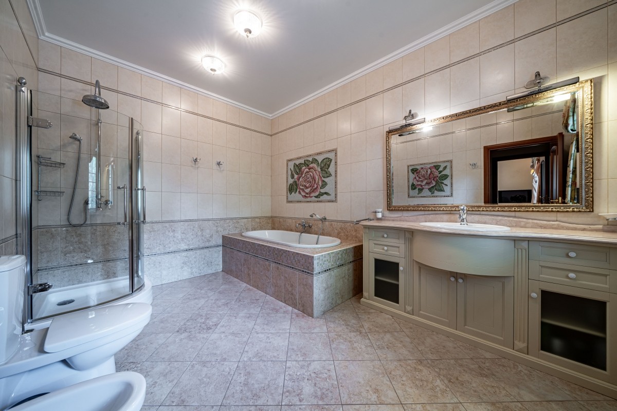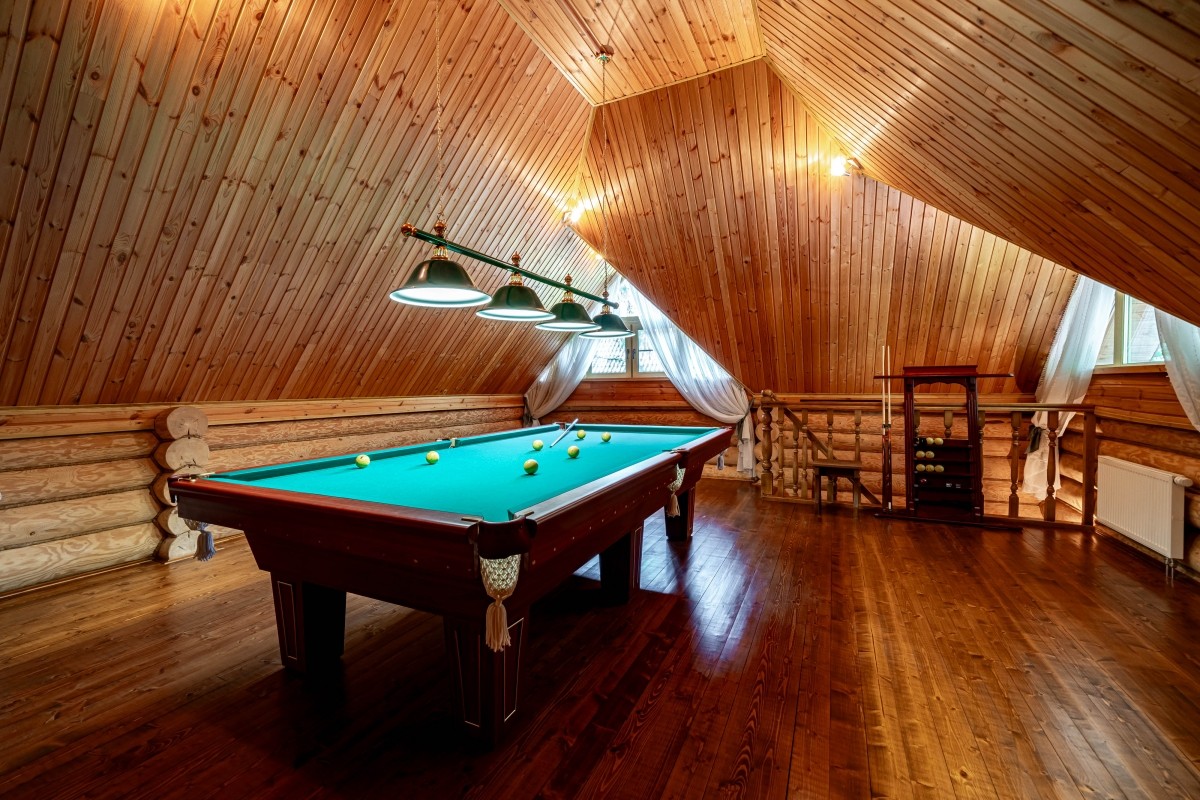 На участке: гараж на 2 м/м с квартирой для персонала на втором этаже, двухэтажная баня с бильярдом, беседка барбекю, навес на 4 м/м.