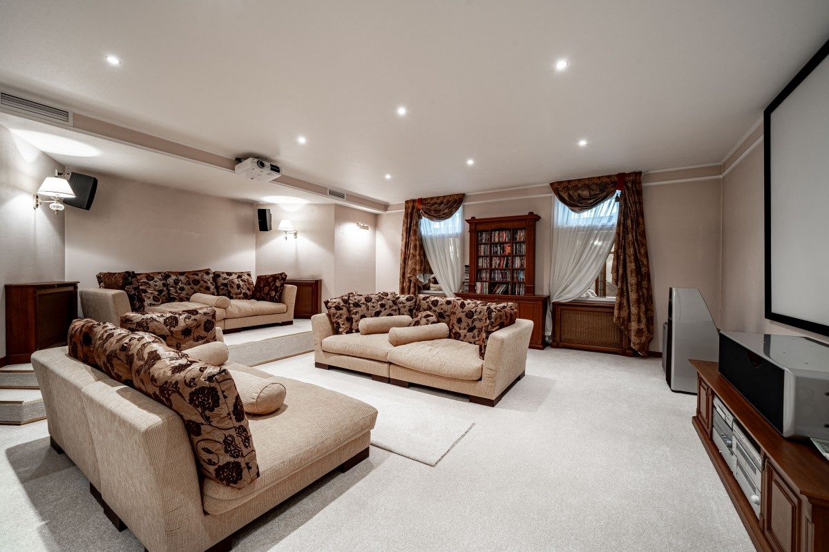 Цоколь: СПА зона с сауной и купелью, тренажерный зал, кинотеатр, гардеробная, тех. помещение.