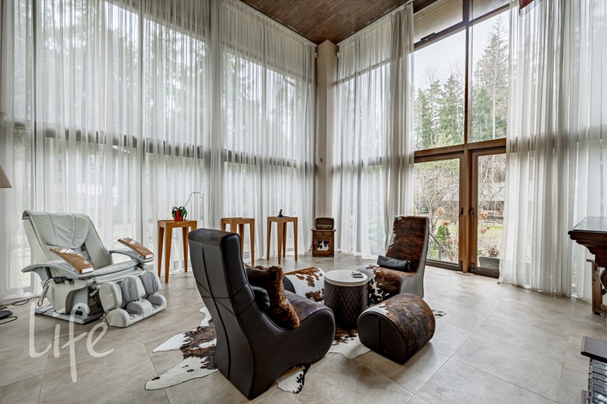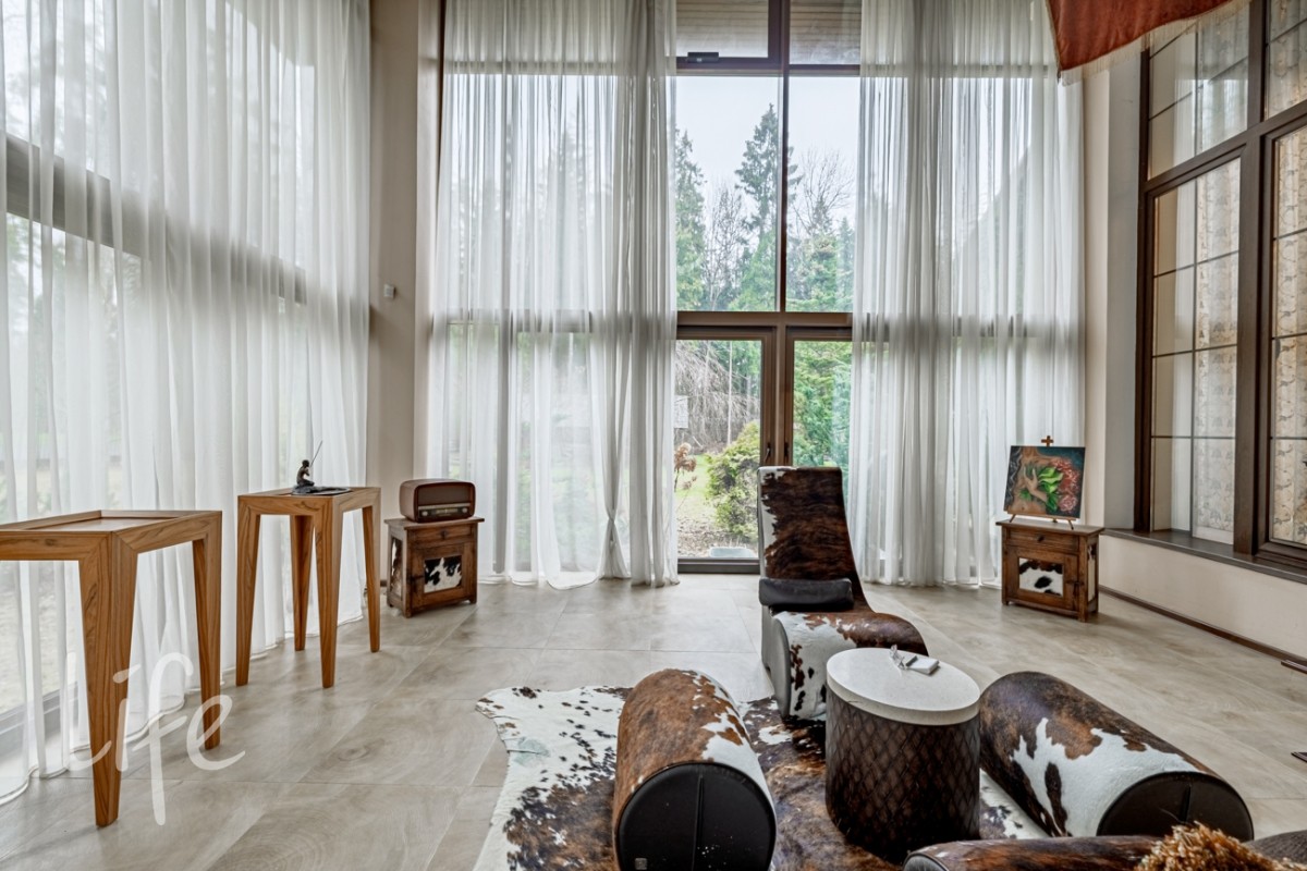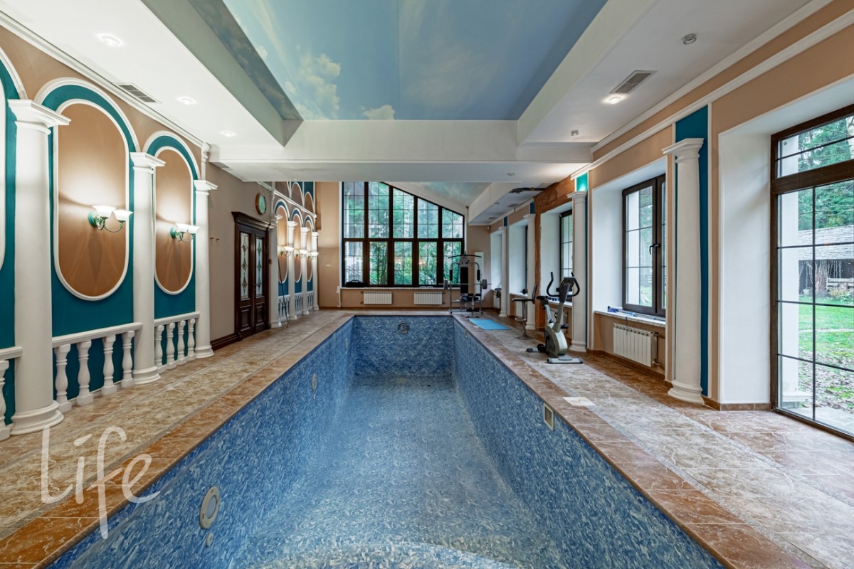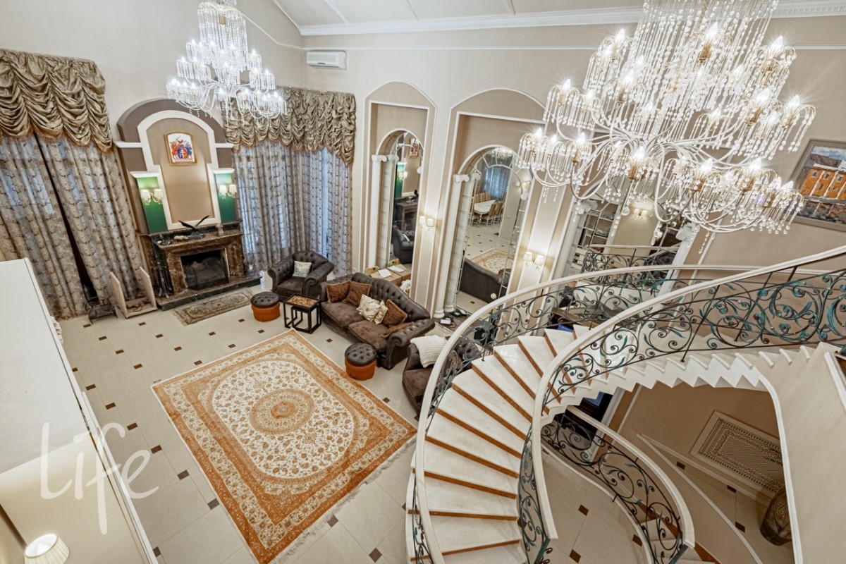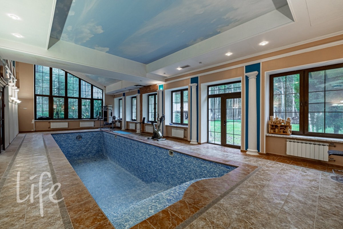 1 этаж: холл, гардеробная, кухня, столовая, каминный зал с двойным светом, бассейн, кабинет, постирочная, гостевой с/у, гараж на 2 м/м.