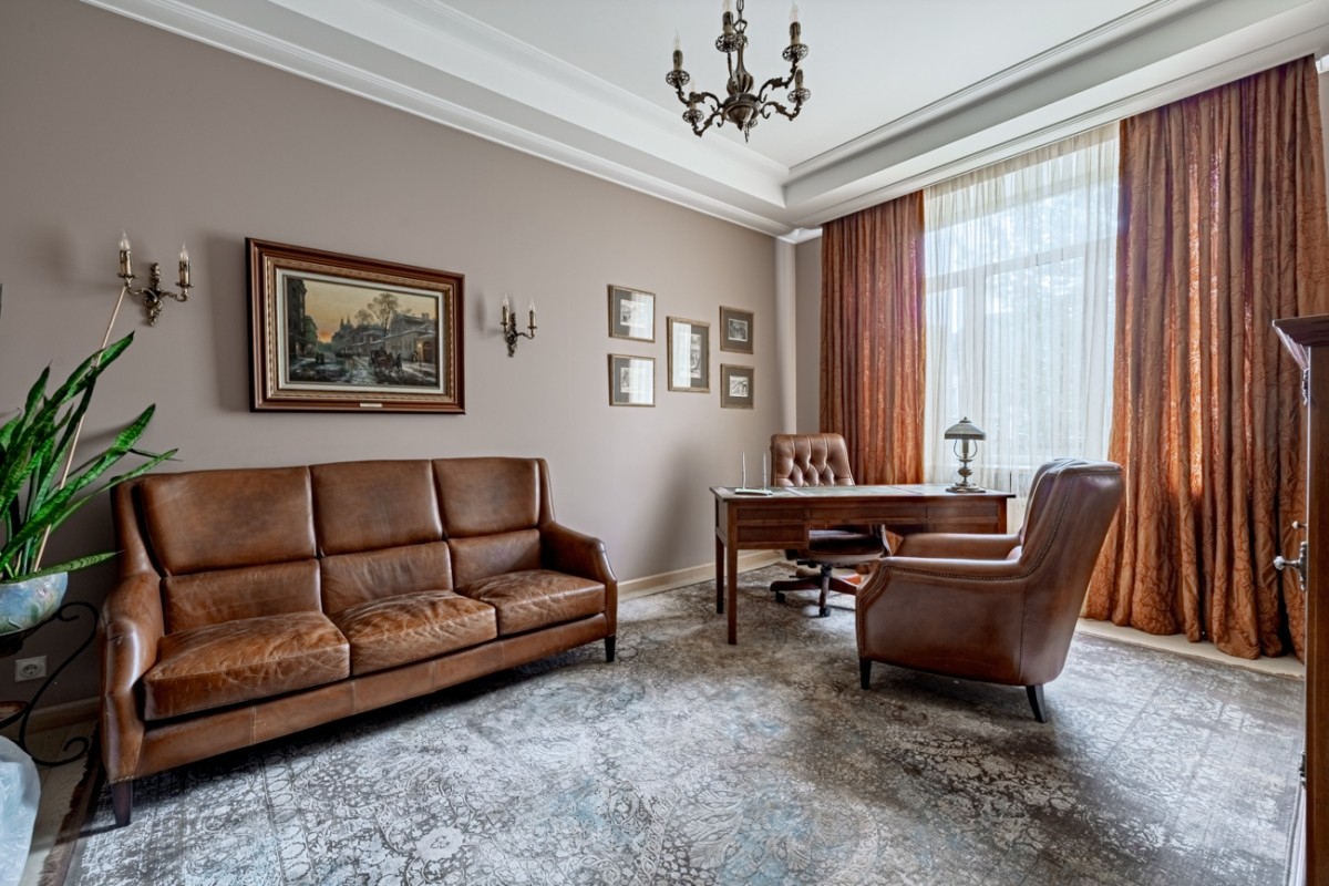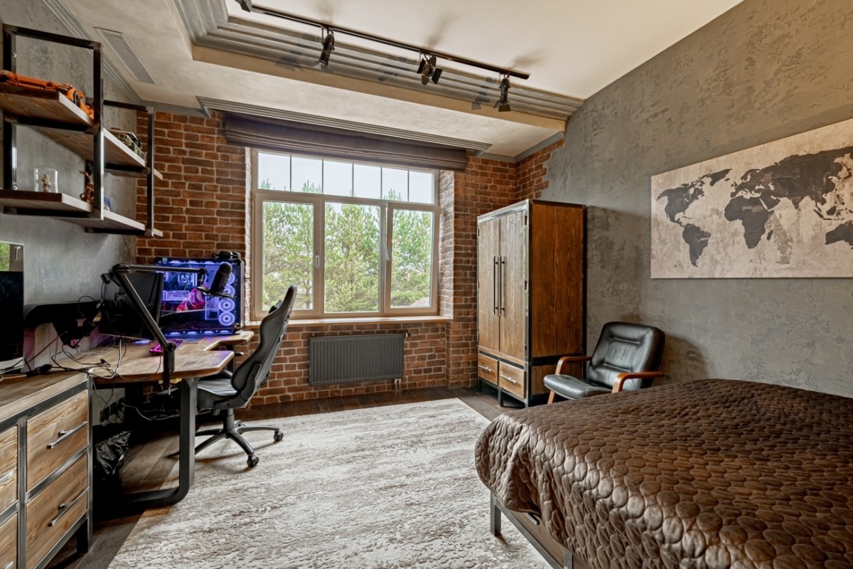 2 этаж: Мастер-спальня с санузлом и гардеробной, две спальни, с/у, подсобная комната. В отдельном крыле: квартира для персонала с двумя комнатами, кухней, с/у.