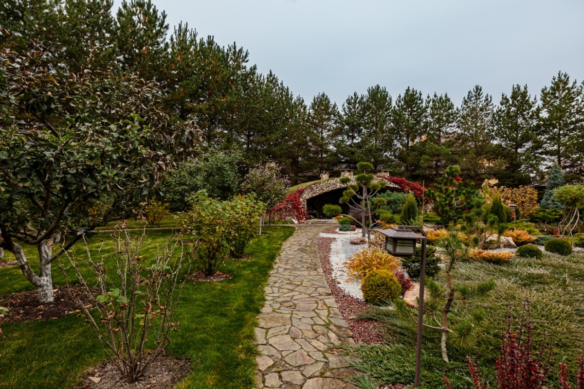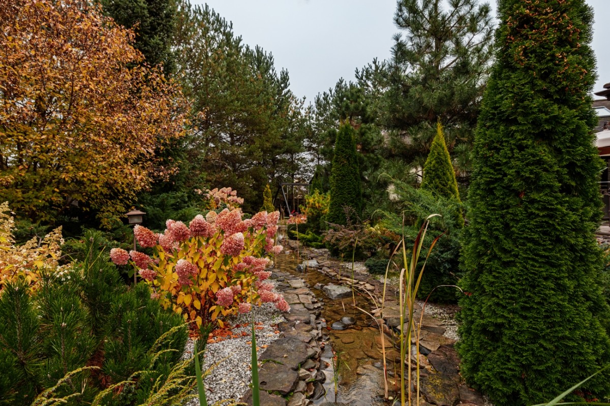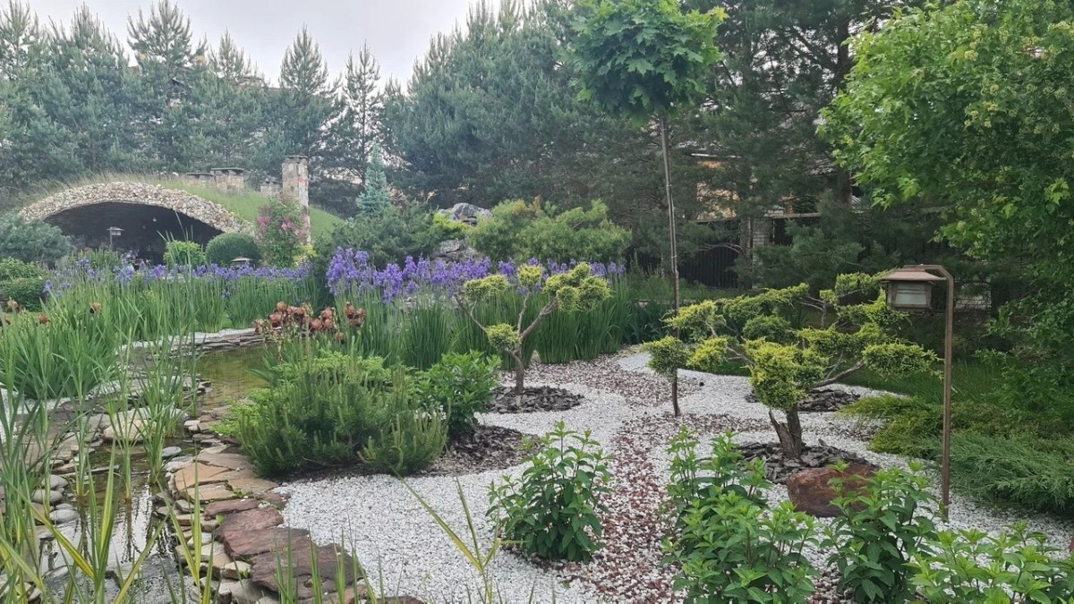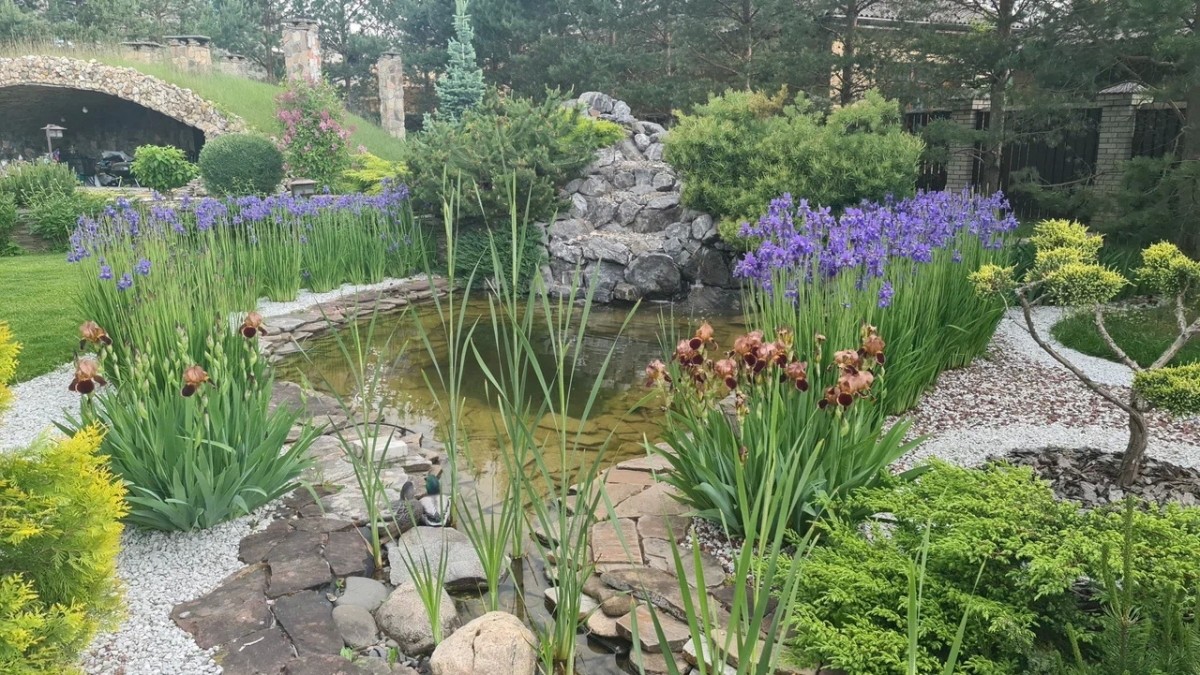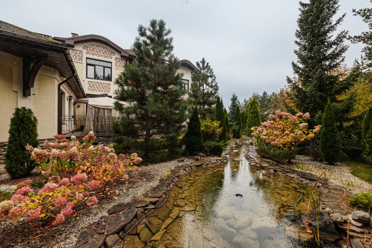Шикарный ландшафтный участок с гротом, каскадом прудов, разноцветием сезонных растений. Ухоженный и взрослый сад. Места для уединенного отдыха, отдельно есть уголок с детской площадкой, солнечные поляны для посиделок на шезлонгах и тд