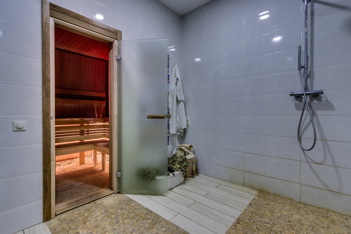 В отдельном крыле СПА-зона с бассейном, сауной и выходом на открытую террасу-патио.