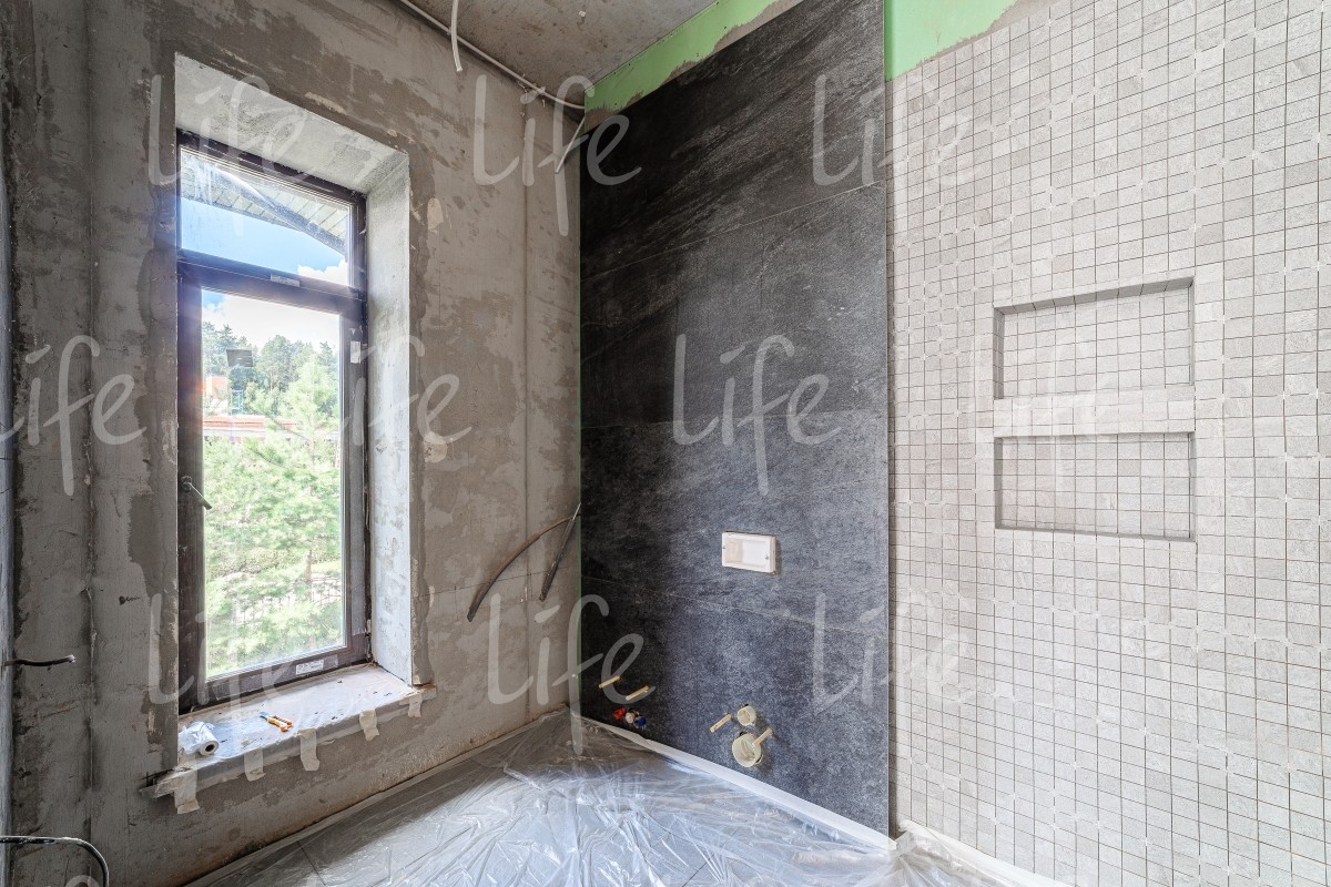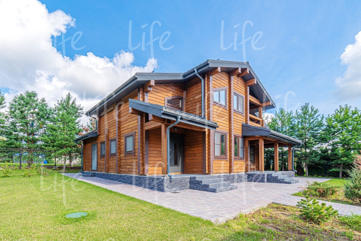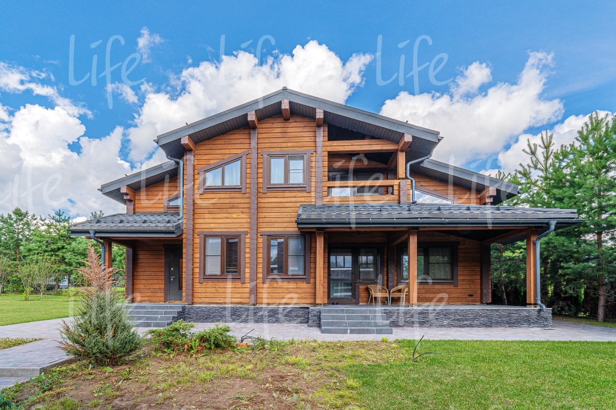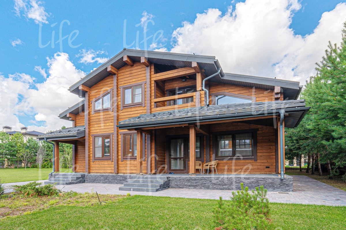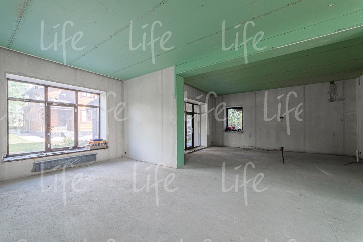 Коттеджный поселок премиум-класса «Ренессанс Парк». Новый дом в современном стиле Фрэнка Ллойда Райта выполнен. Внутренняя отделка в состоянии «White box». Фасад здания облицован каменным клинкером и деревянными досками. Входная группа включает широкое крыльцо и навес на два автомобиля. Крыша покрыта композитной черепицей. В настоящее время идут чистовые отделочные работы внутри дома. Проект дизайна интерьера прилагается к дому.