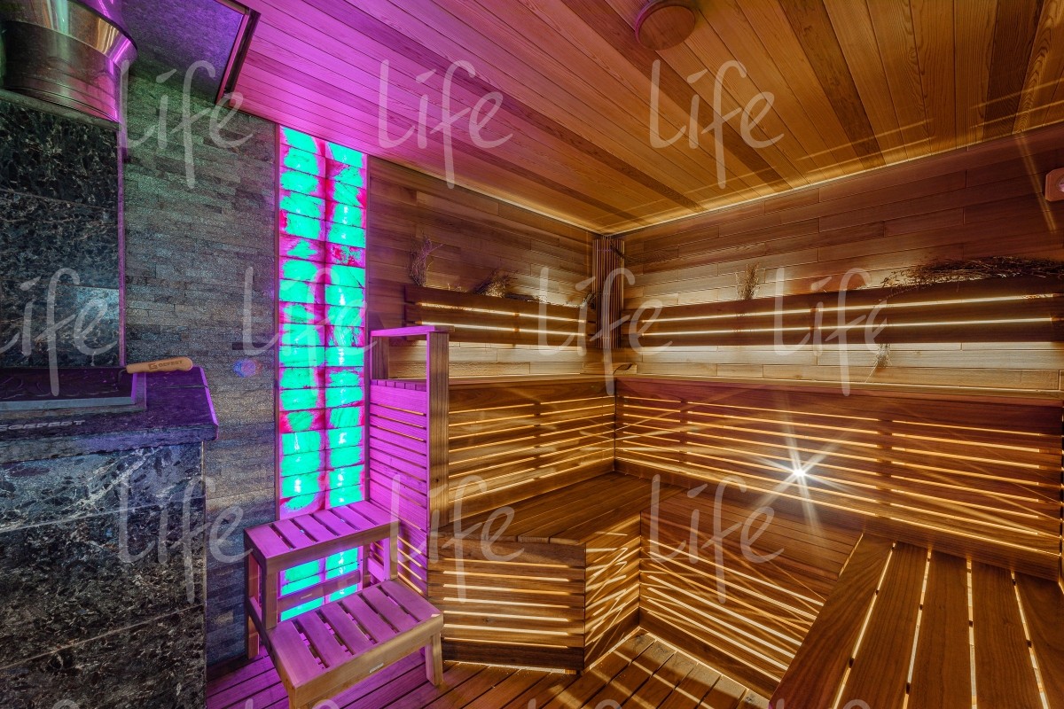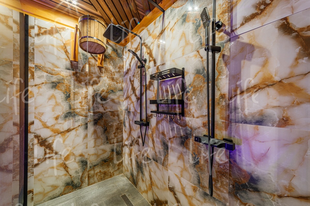 Банный комплекс: прихожая, гостиная-кухня-столовая с вторым светом, с/у, две спальни, с/у, СПА-зона с парилкой и купелью.