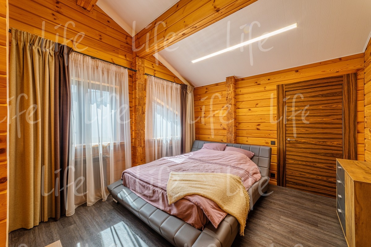 Комфортная планировка с четырьмя спальнями, гостиной будет удобна для проживания большой семьи. Отдельно стоящий банный комплекс из бруса под ключ предлагает отличный способ расслабиться. Здесь также есть две гостевые спальни и гостиная.