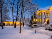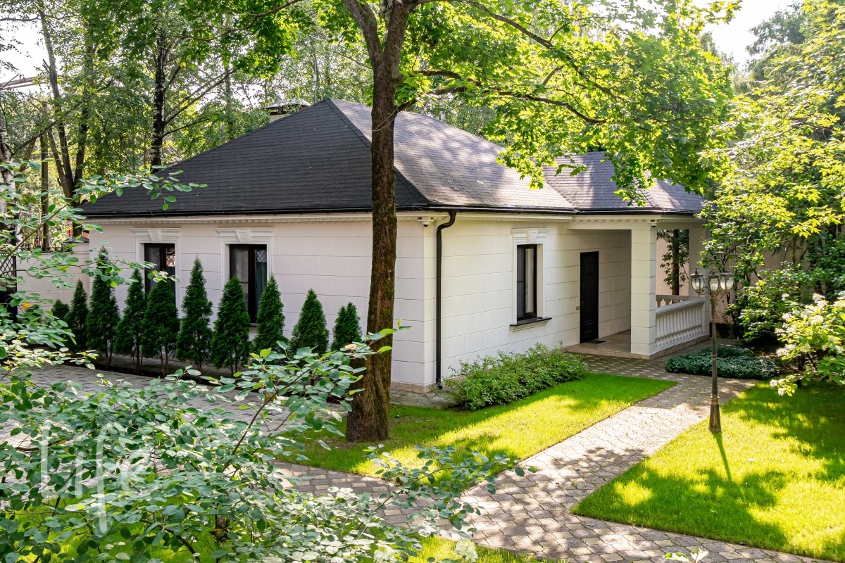 На лесном участке правильной формы площадью 20 соток расположены 3 строения: основной дом, гостевой дом с помещением для персонала и барбекю беседка. Выполнен ландшафтный дизайн, система авто полива. По периметру установлены датчики охраны и камеры.