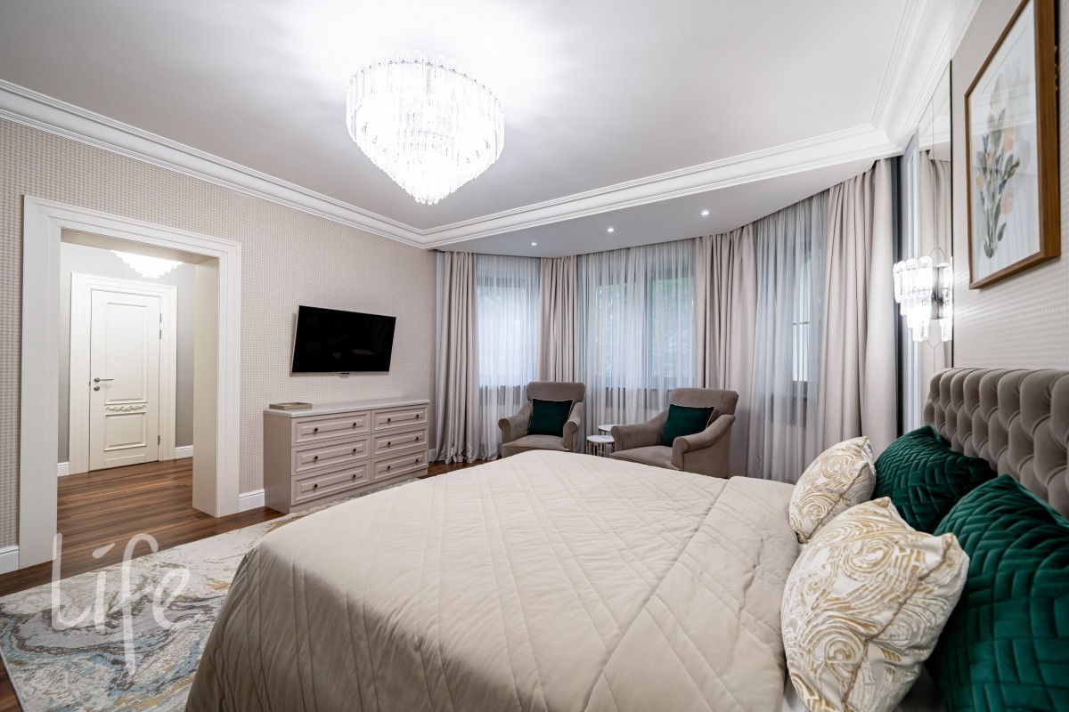 2 этаж: мастер-спальня с мужской и женской гардеробной, мастер-ванна, детская спальня, с/у.