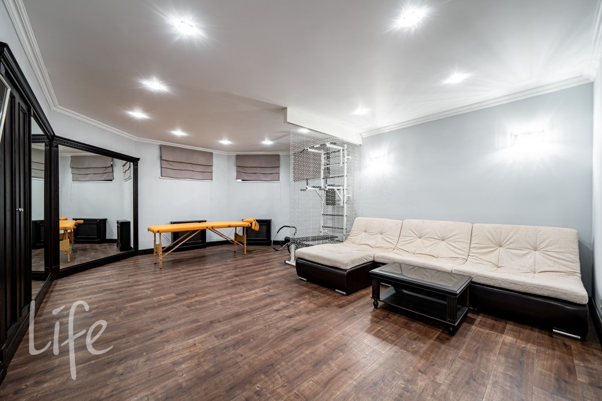 Цоколь: спортивный зал, спа: джакузи, сауна, с/у, душевая, кладовая,