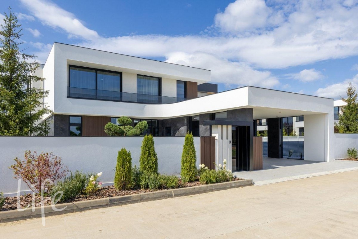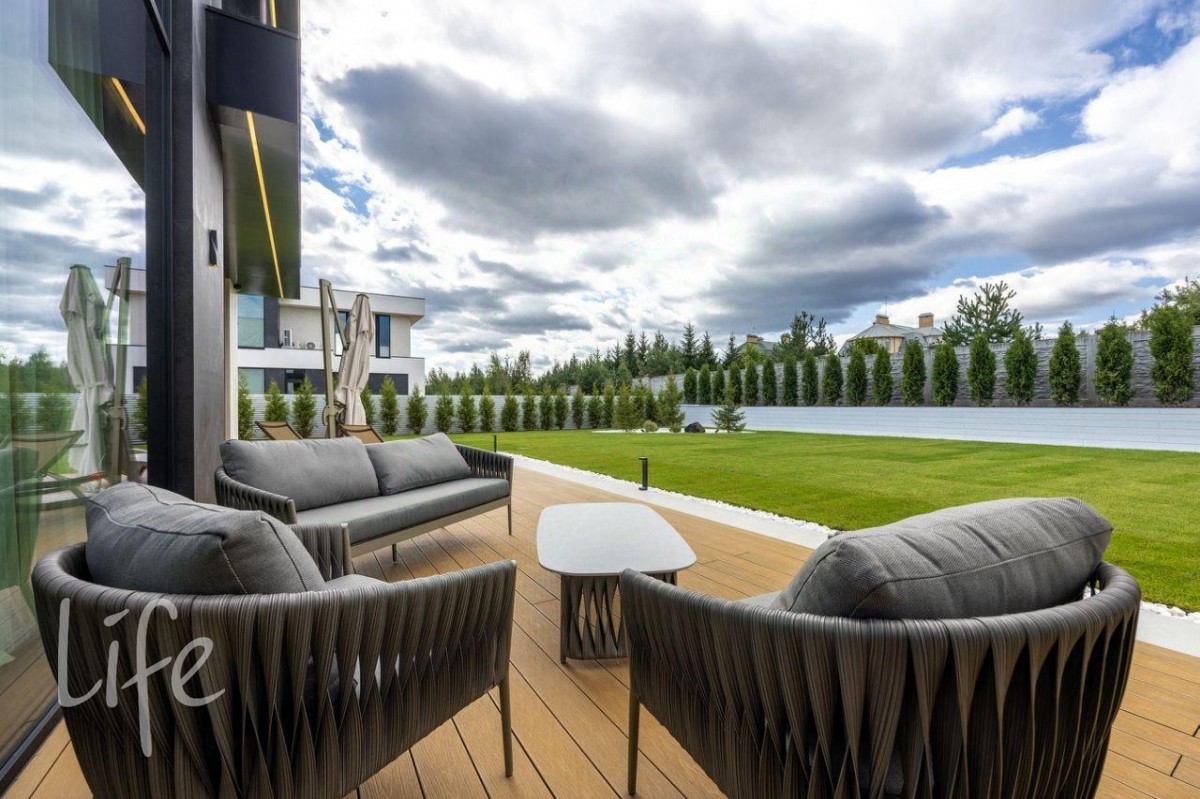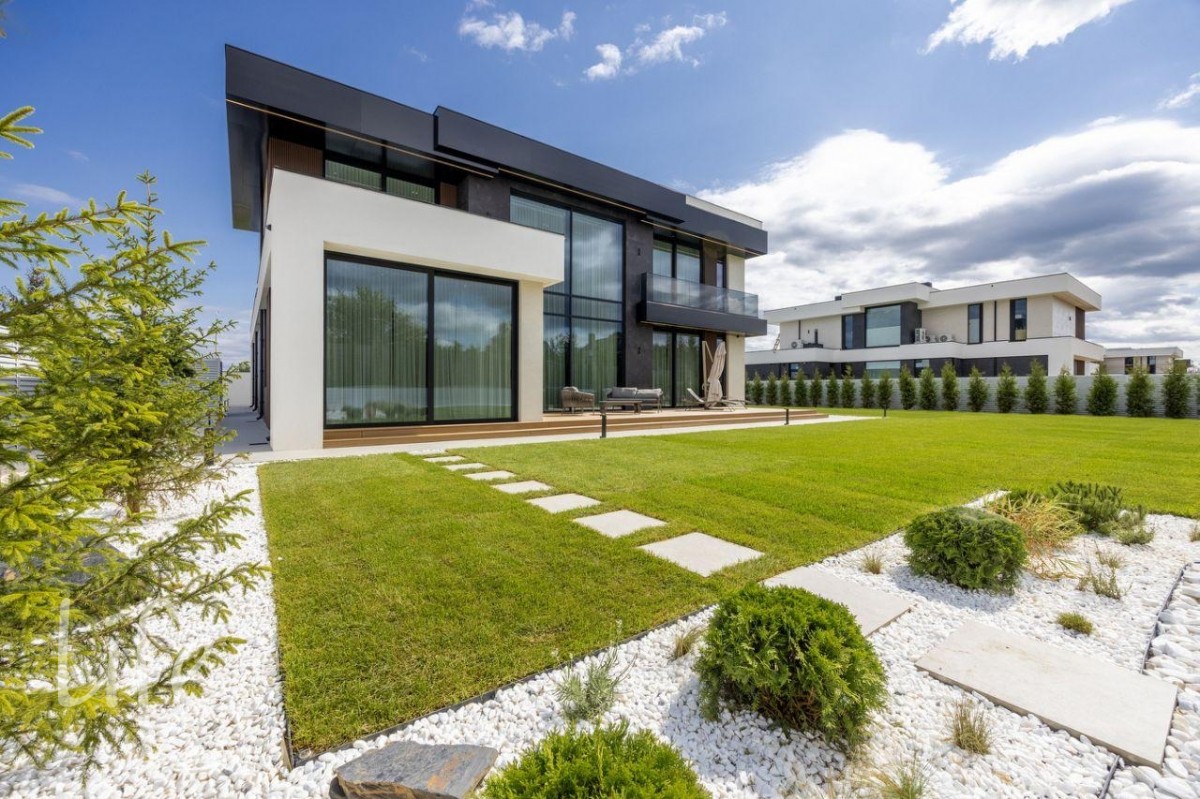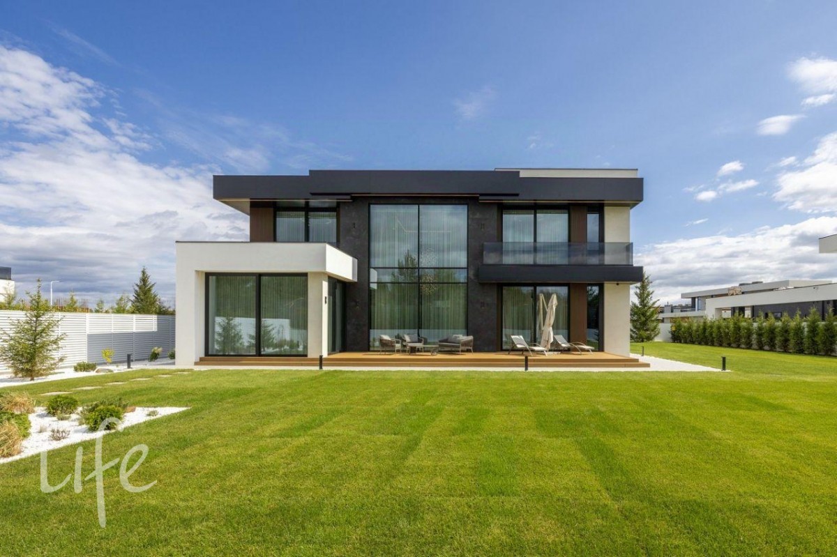 Элитный коттеджный поселок «Райт Хиллс». Новый дом в стиле хай-тек, панорамное остекление, плоская кровля. Полностью под ключ, меблирован и оборудован всей необходимой бытовой техникой.