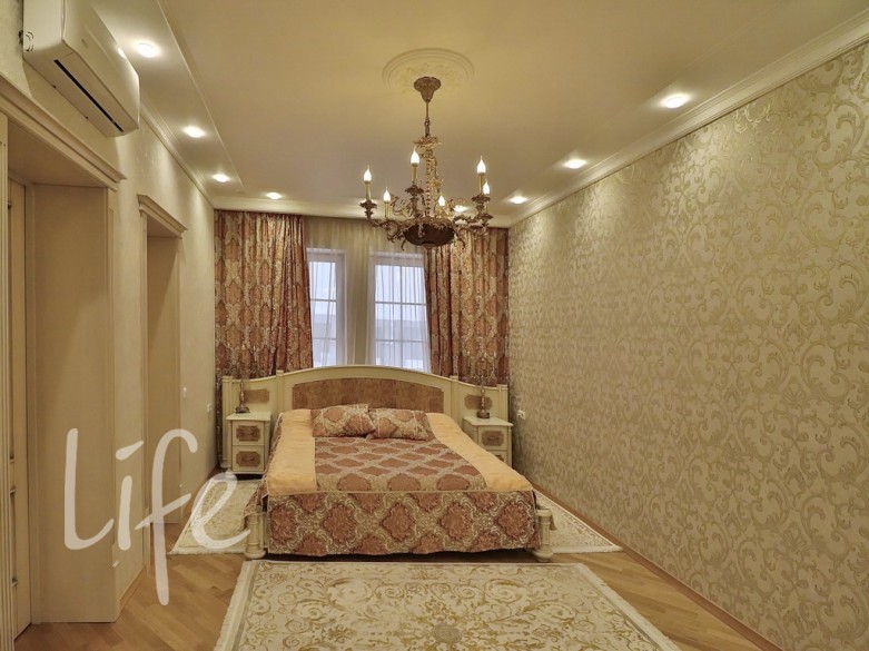 Интерьер выполнен в классическом стиле, с тщательно подобранной мебелью и предметами декора. Планировка дома удобная и комфортная, что делает его идеальным для большой семьи.