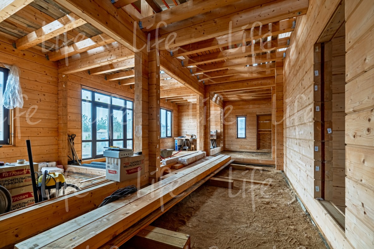 Дом, построенный из клееного бруса, под внутреннюю отделку. Год постройки 2020, уже отстоявшееся строение, готовое для внутренней отделки. Окна: двухкамерные стеклопакеты и алюминиевый профиль, мягкая кровля.