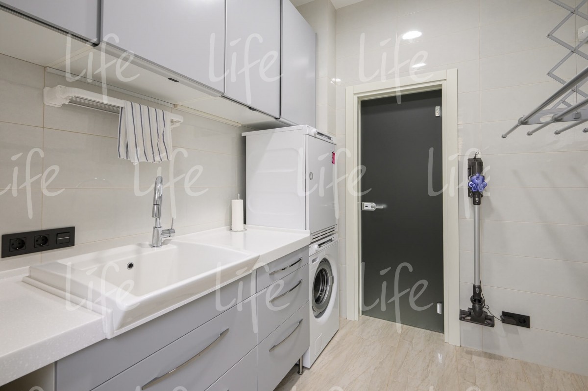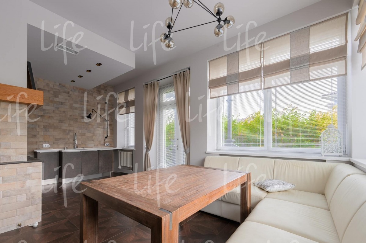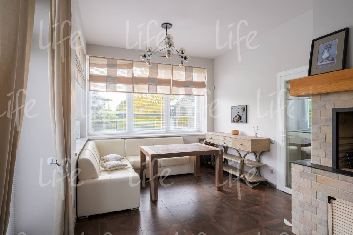 Продуманная планировка, светлый интерьер с элементами ар-деко, высокие потолки, живописные виды из окон, итальянская и испанская мебель, приточно-вытяжная вентиляция, теплые полы, дизайнерские радиаторы Arbonia, премиальная бытовая техника (холодильник Liebherr, плита De Dietrich), французский камин в гостиной, дровяная печь на веранде, зеленый участок с ландшафтным дизайном и плодовыми деревьями.