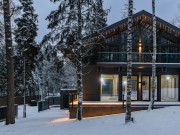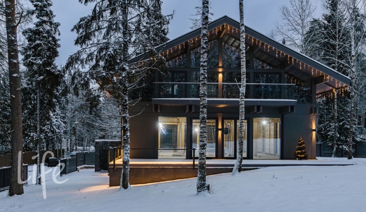 Премиальный дом вписан в естественный ландшафт участка, а большое остекление наполняет дом светом.