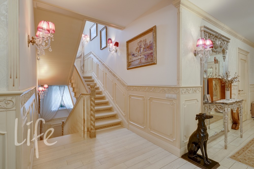 Цоколь: прихожая, кинотеатр, хаммам, баня, джакузи, су, раздевалка, холодильник для хранения шуб, чемоданная, бильярдная, спортзал с выходом на участок, кабинет, техническая кухня.