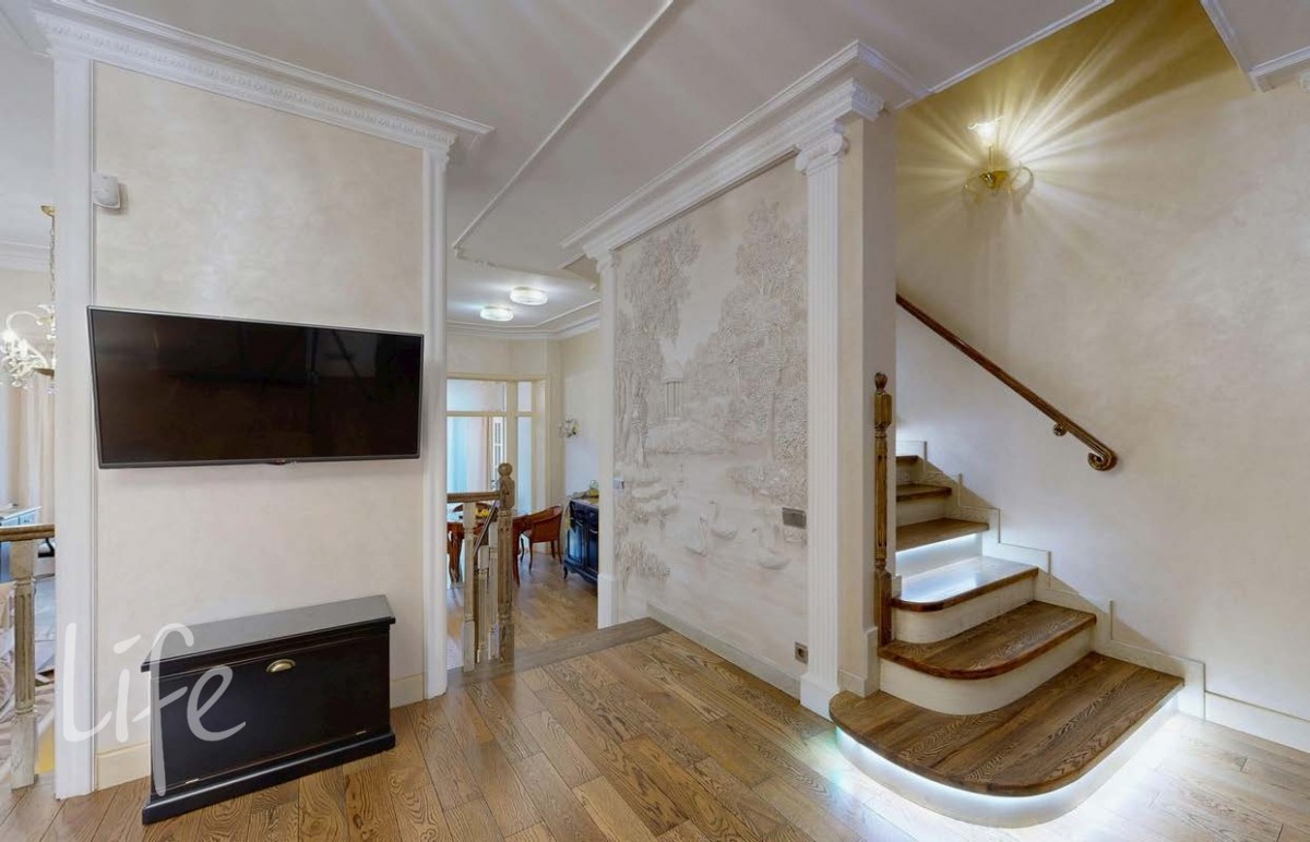 2 этаж: холл, хозяйская спальня со своим с/у с ванной и биде, гостевая спальня, кабинет, с/у с душевой кабиной и стиральной машинкой.