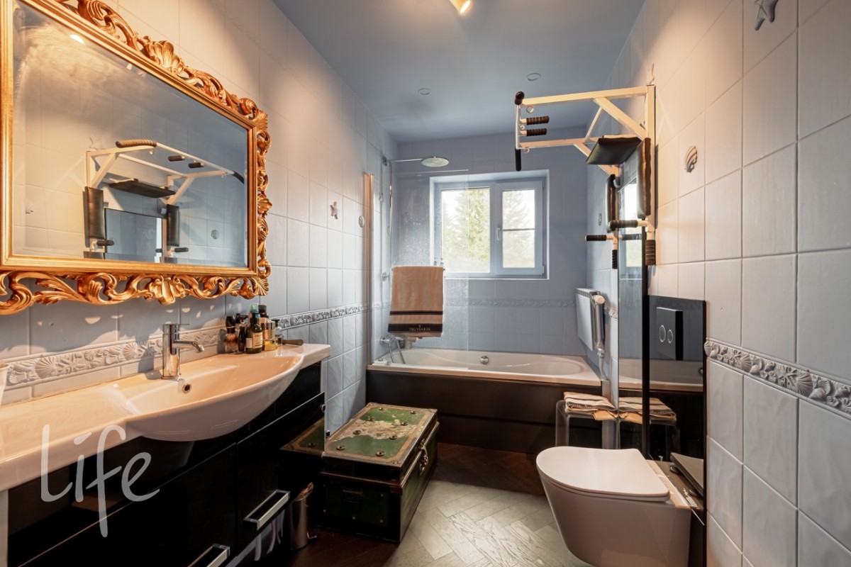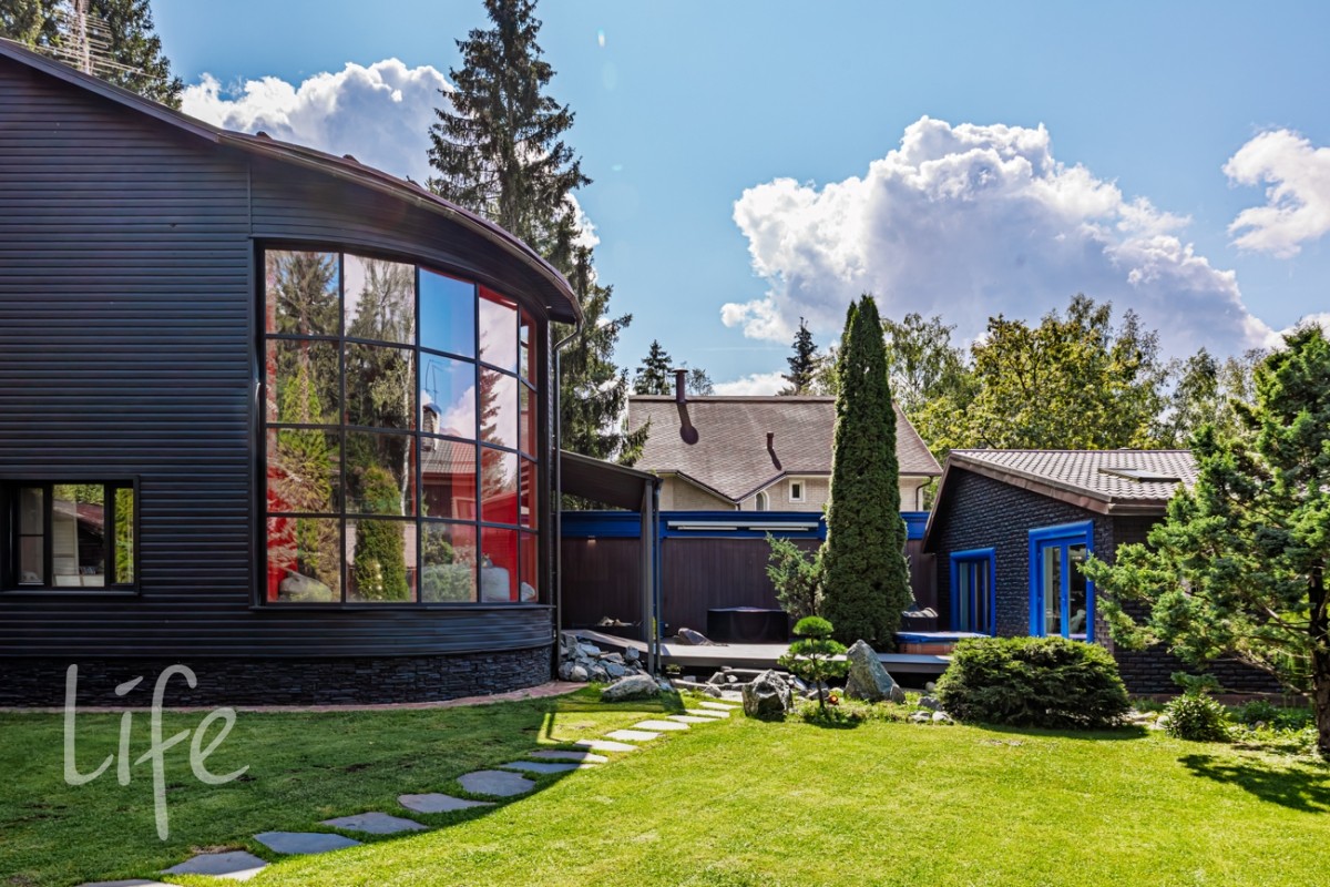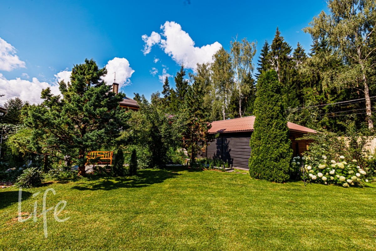 Кроме жилого дома на участке расположена баня с мастерской, отдельный гараж с жилой комнатой и крытая парковка на 2 ам