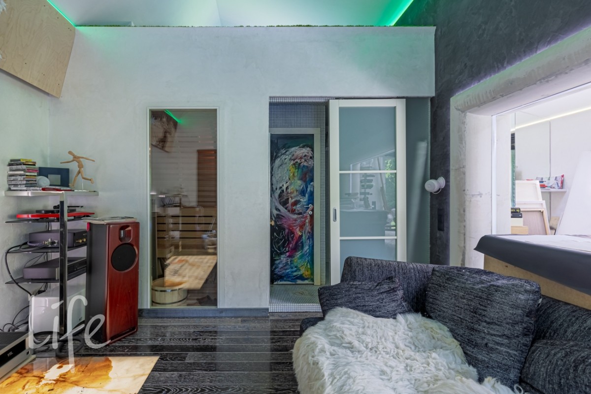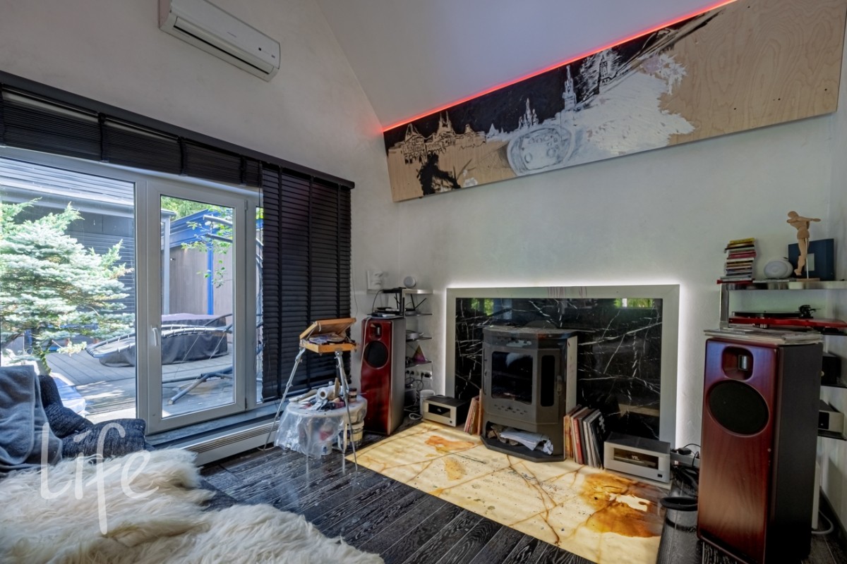 1 этаж: прихожая-холл со вторым, светом, гардеробная, гостиная с камином, мягкой зоной и столовой, кухня, спальня, су с душевой, котельная, жилая зона с комнатой и отдельным входом.