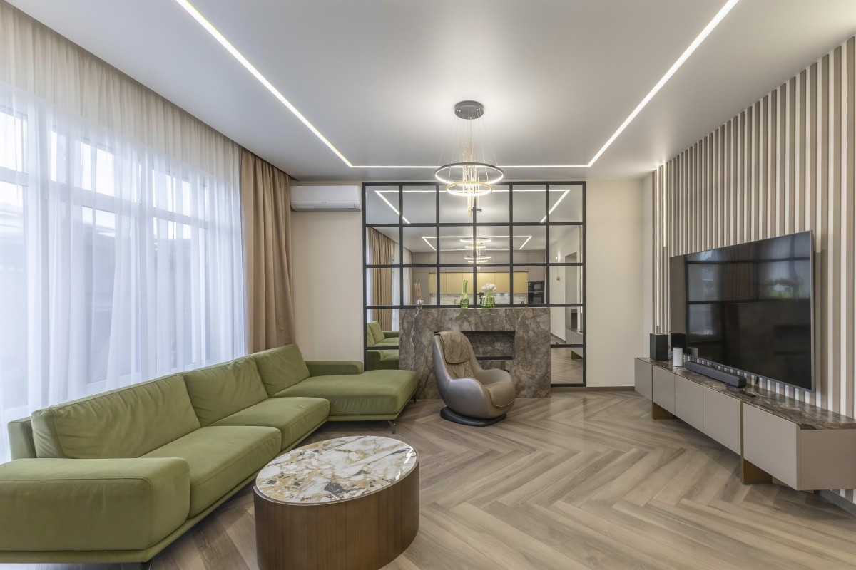 Современный интерьер, много света, передовые световые решения, много зеркал. Мебель и аксессуары подобраны со вкусом. Все центральные коммуникации. Дом с нетерпением ожидает своих новых хозяев.