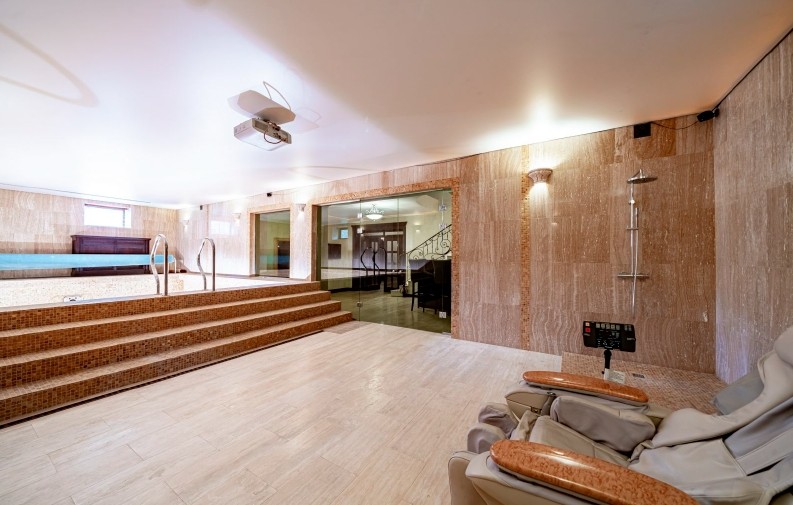 Цоколь: бассейн, сауна, комната отдыха, су, кладовая, постирочная.