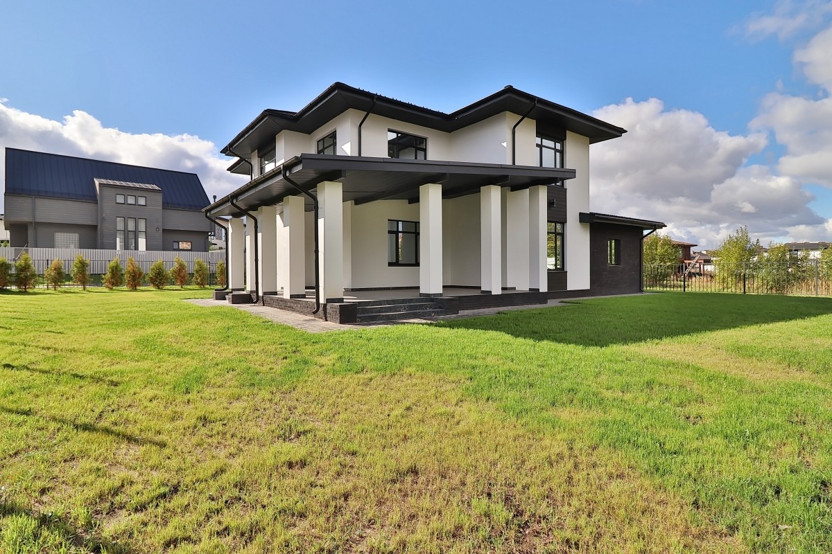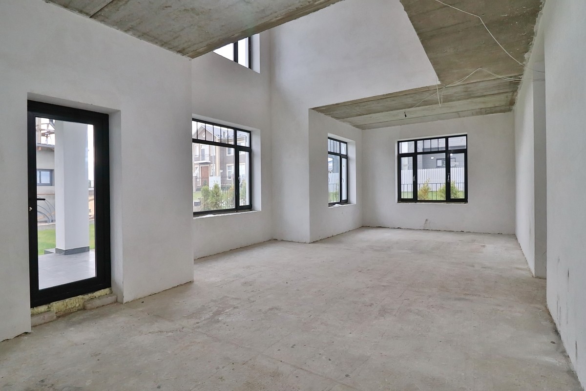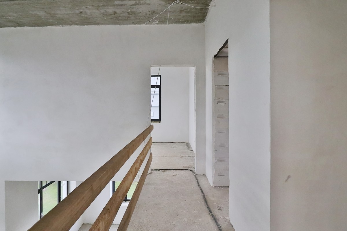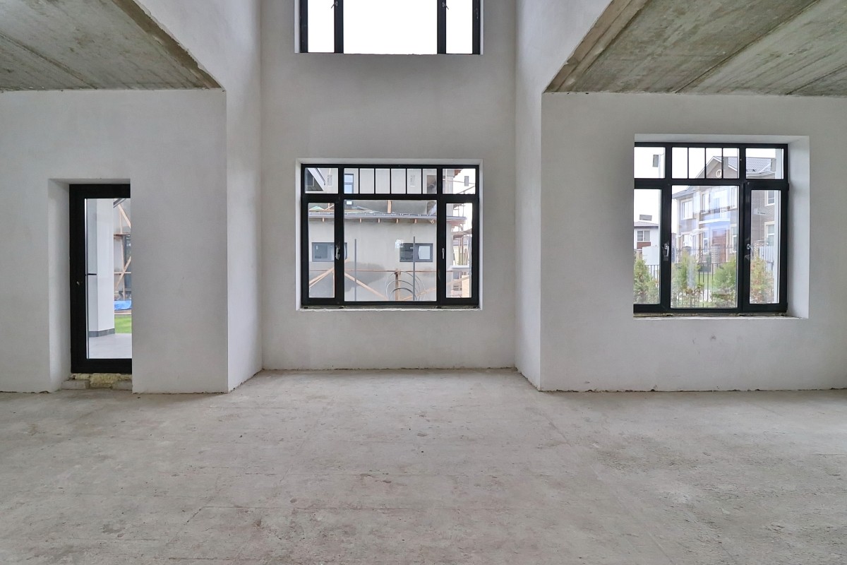 Коттеджный поселок «Павловы озера». Новый дом с завершенными фасадными работами, под внутреннюю отделку. Стены внутри дома оштукатурены.